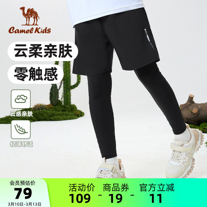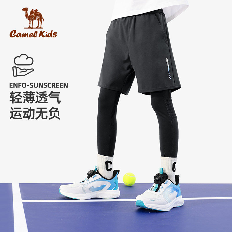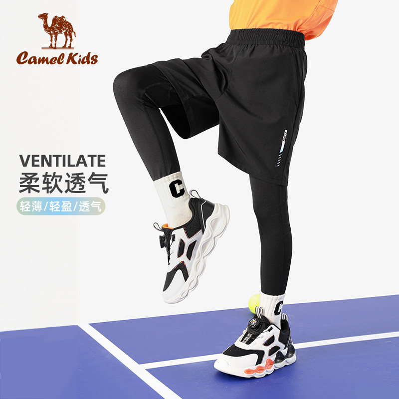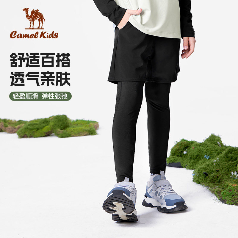 小骆驼男童运动紧身运动透气长裤篮球足球训练假两件儿童跑步裤子