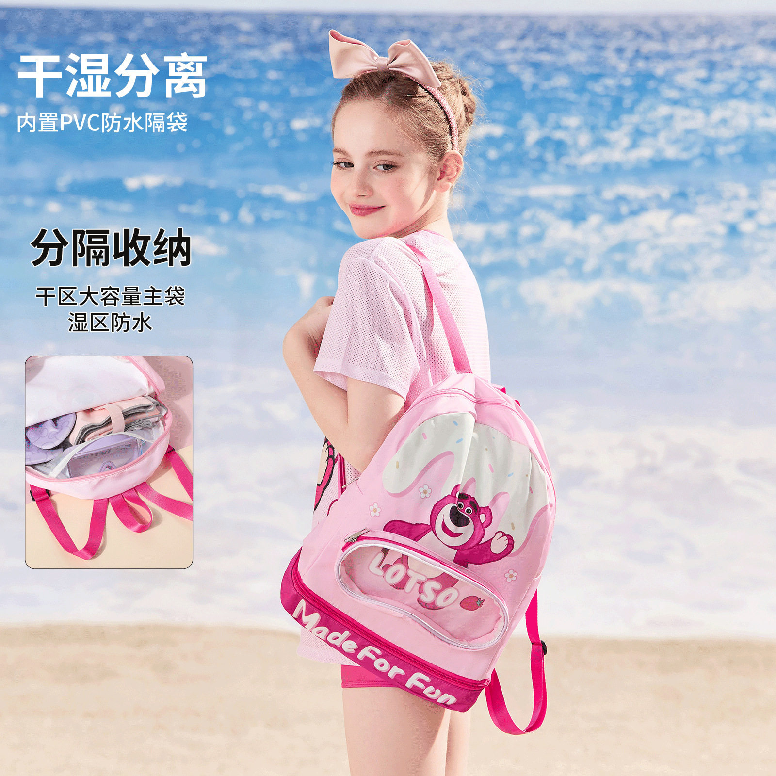 艾莎公主儿童游泳包干湿分离双肩包冰雪奇缘男女童沙滩包防水包新