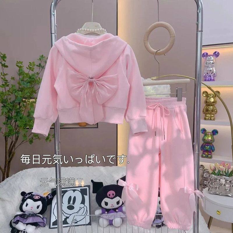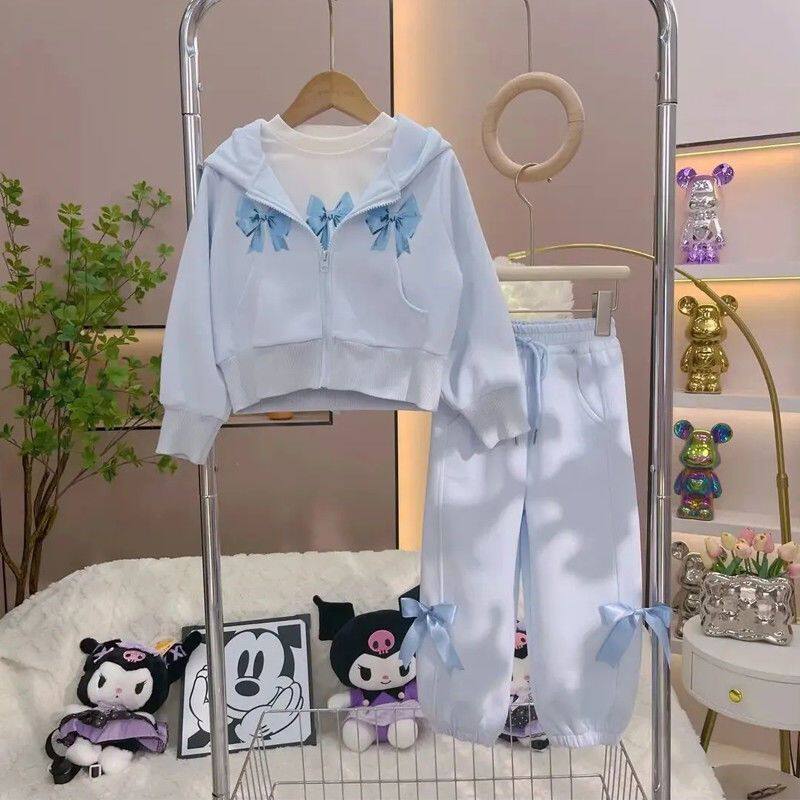 女童春秋套装2025新款中大童休闲连帽外套打底衫运动束脚裤三件套