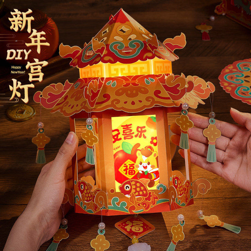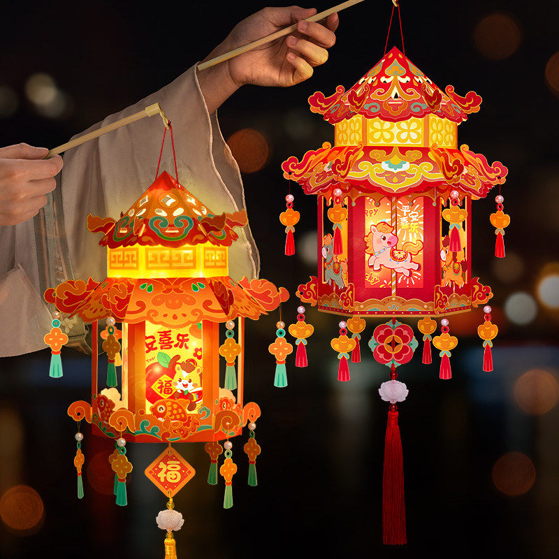 新年儿童手提灯笼2026新款手工diy马年花灯元宵节半成品制作材料