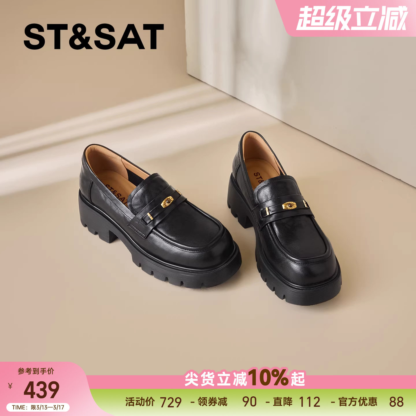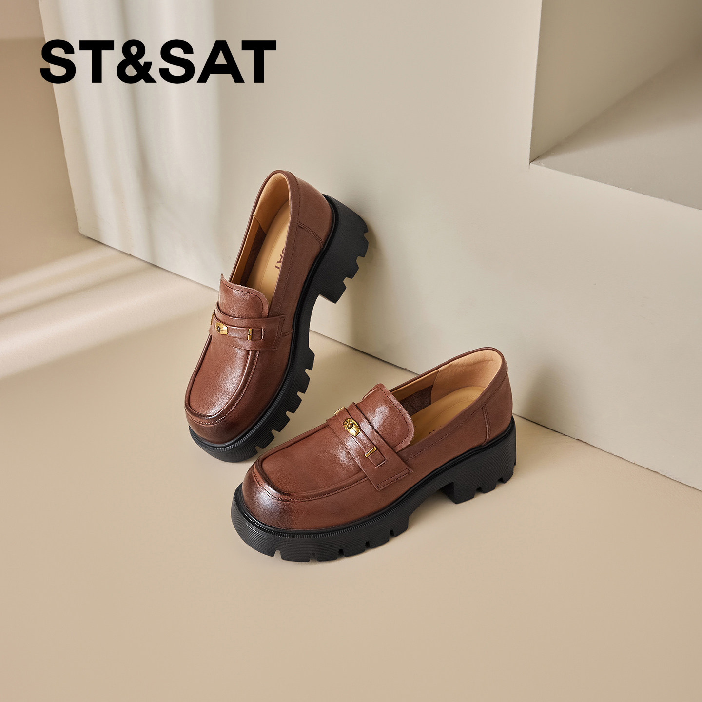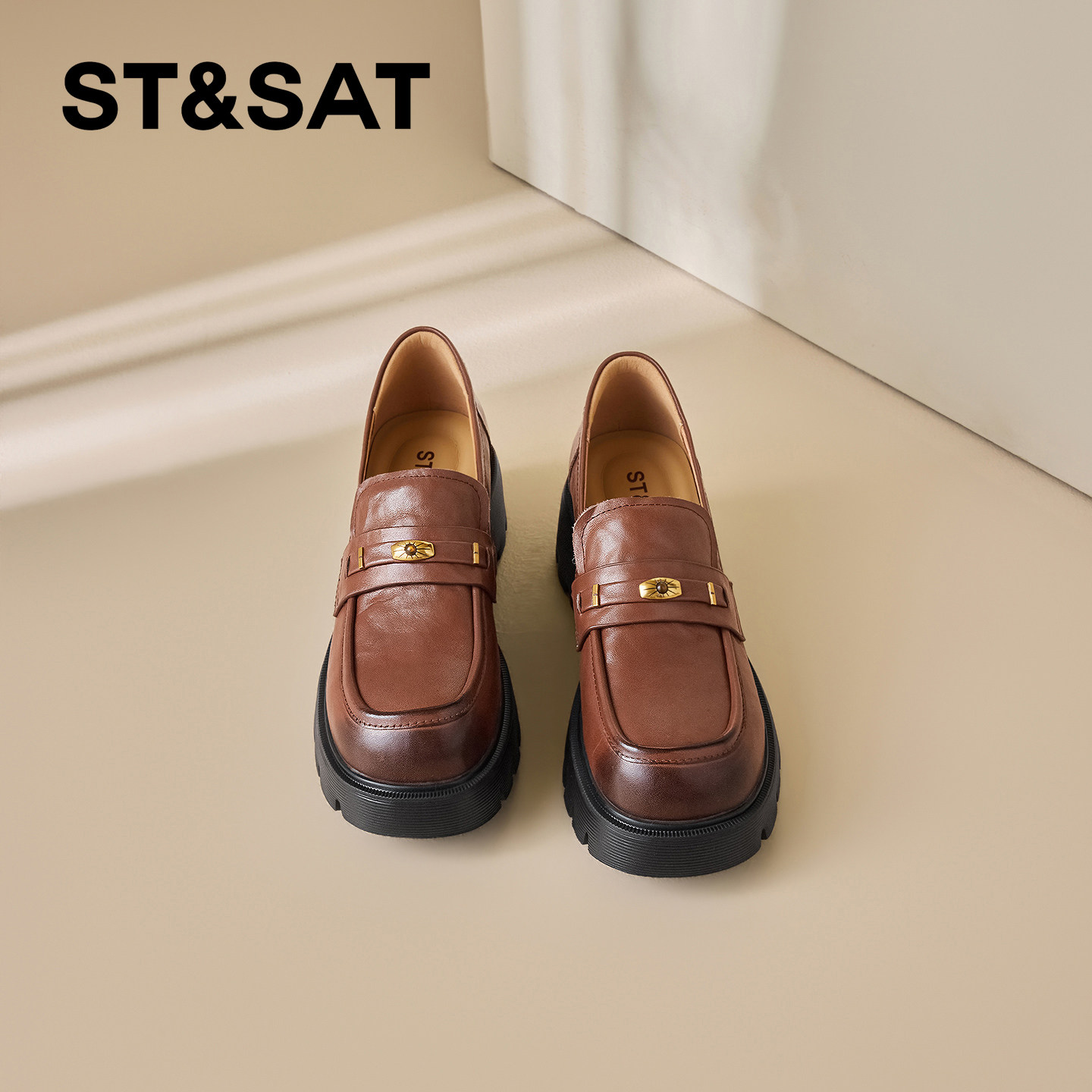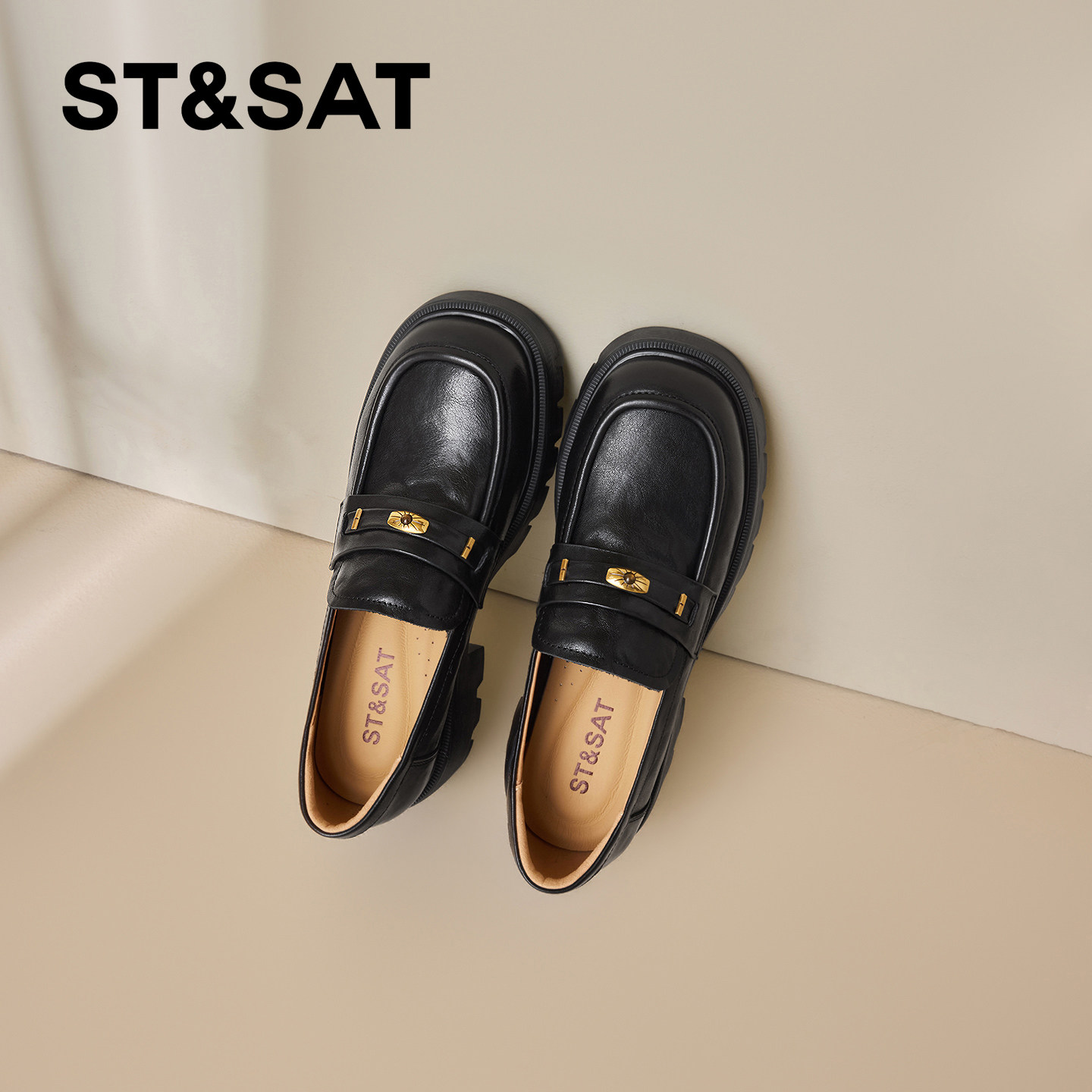 星期六通勤风真皮乐福鞋女2026春季新款金属扣厚底百搭上班小皮鞋