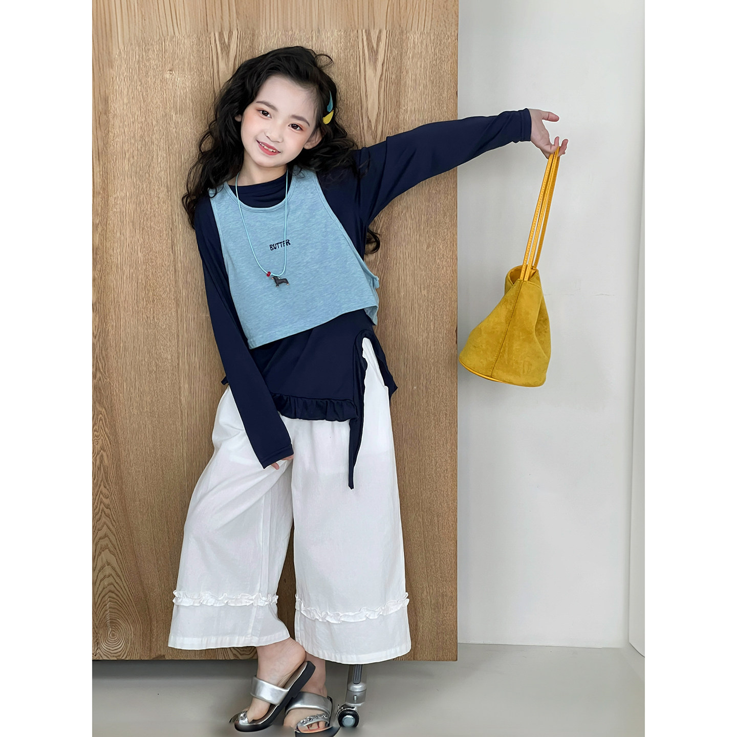 女童套装2026春季新款儿童外穿背心打底衫女孩洋气长袖上衣两件套