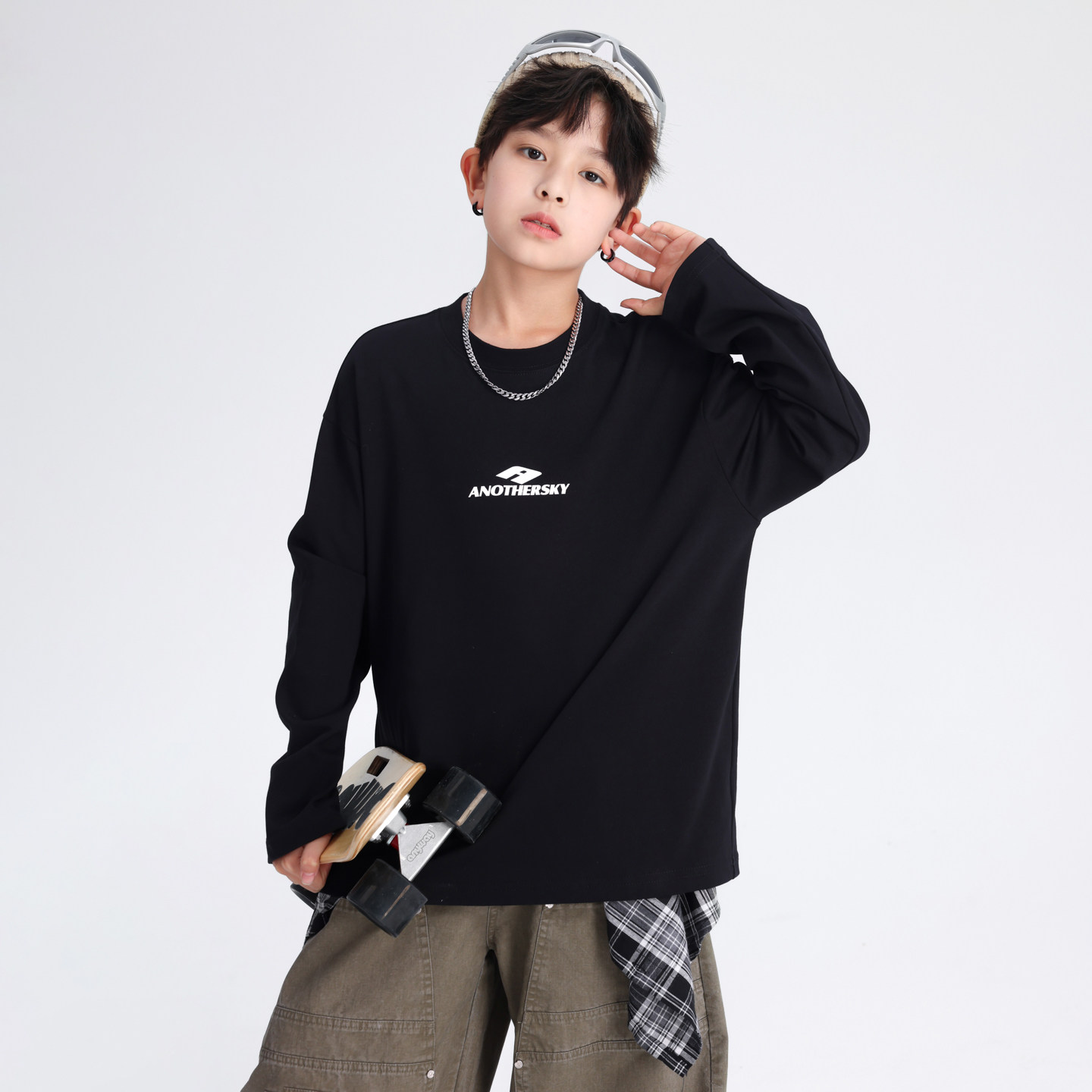 男童春秋酷帅纯棉运动长袖t恤2026新款儿童男孩宽松打底薄款上衣