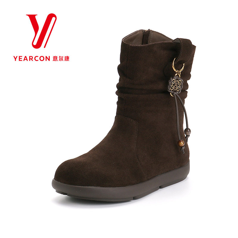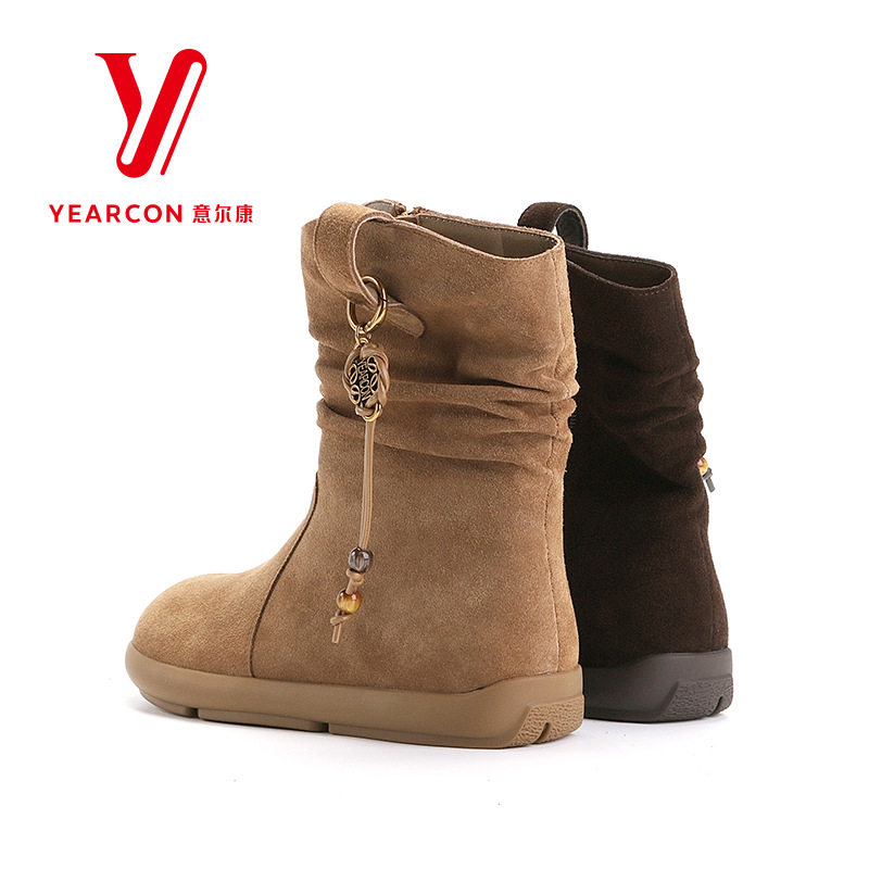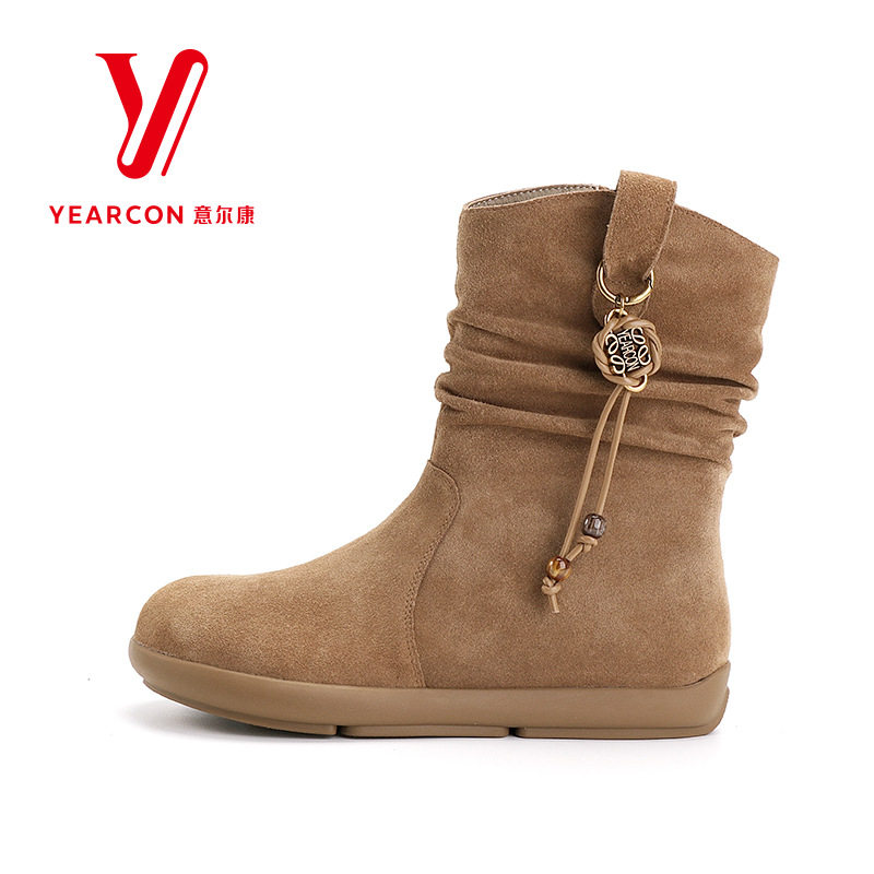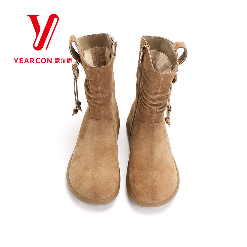 意尔康女靴2025新款中筒靴女平底时装靴子复古切尔西靴正品女鞋