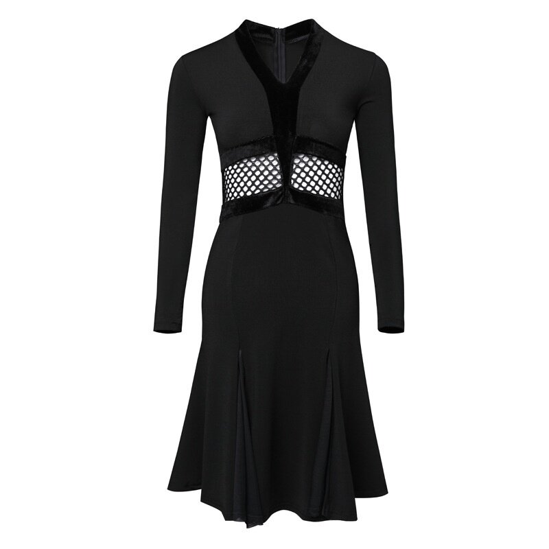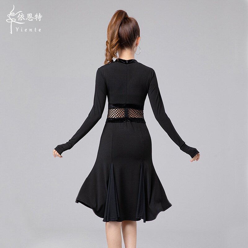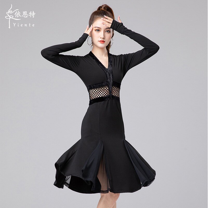 2026新款拉丁舞服成人女连衣裙长袖表演服艺考练功服专业