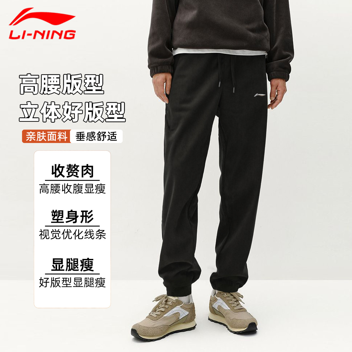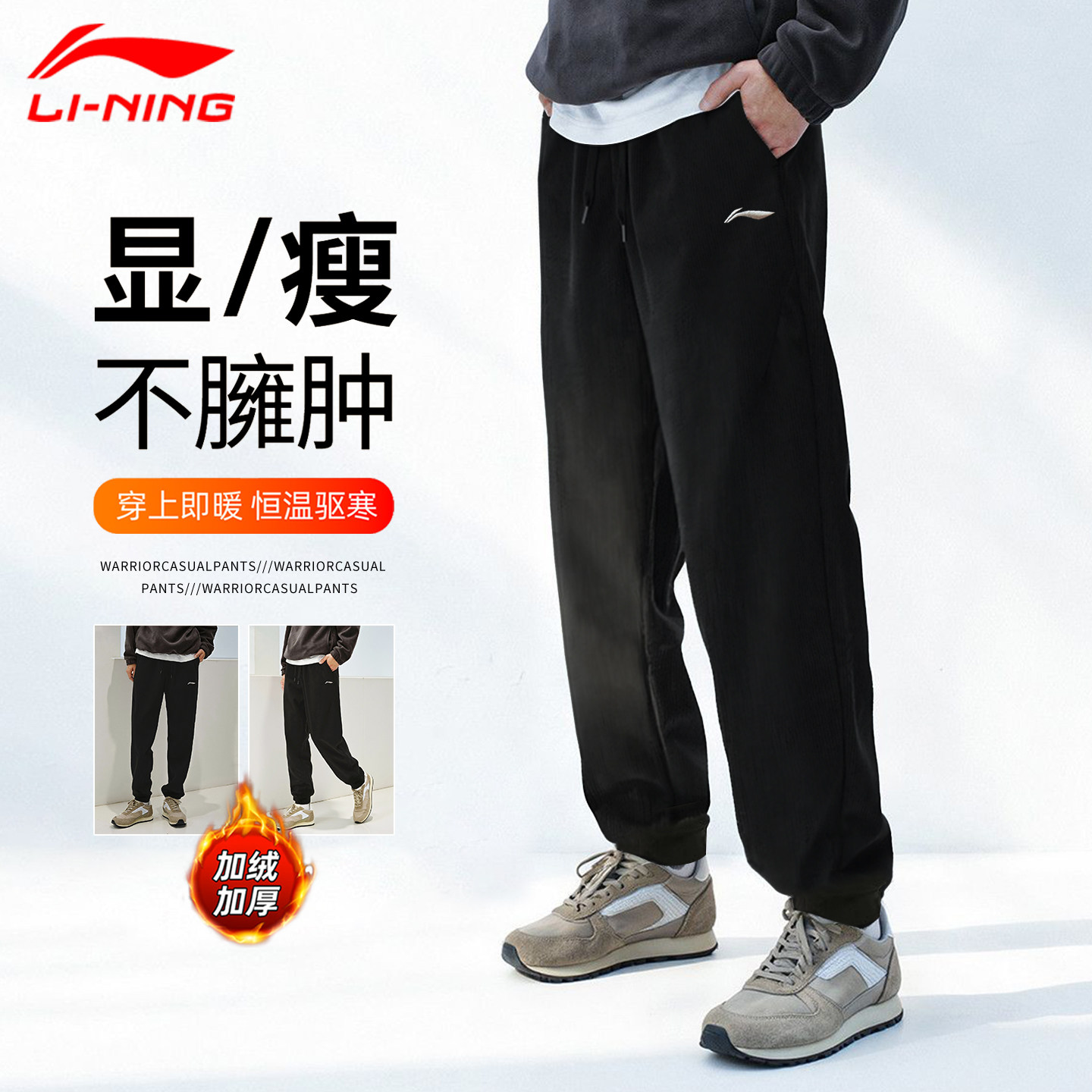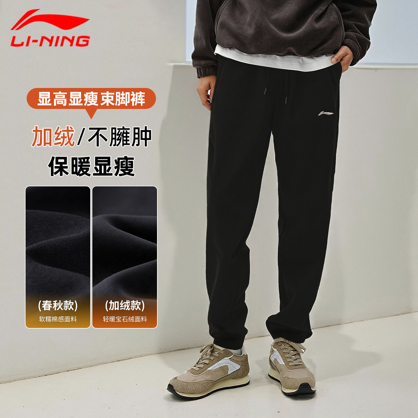 李宁加绒运动裤男青少年裤子男生束脚卫裤新款初中生春秋高中冬厚
