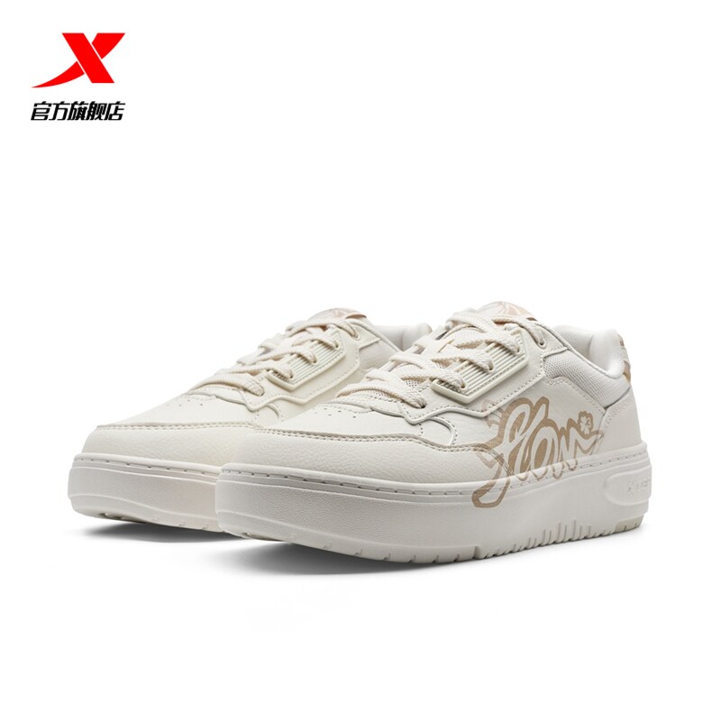 特步千层鞋女士板鞋2026春季新款女鞋厚底革面学生运动休闲鞋百搭