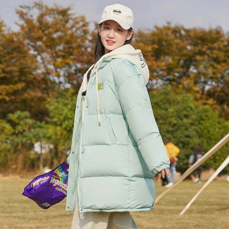 学生羽绒服女韩版少女初中生中长款2024冬装新款外套90绒加厚宽松