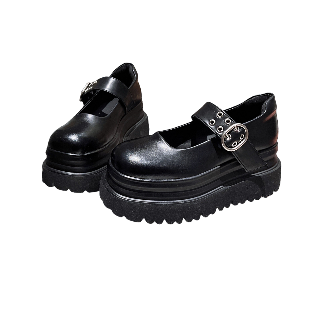 真皮版~一字玛丽珍厚底松糕超高跟小皮鞋小个子乐福鞋单鞋7cm女鞋