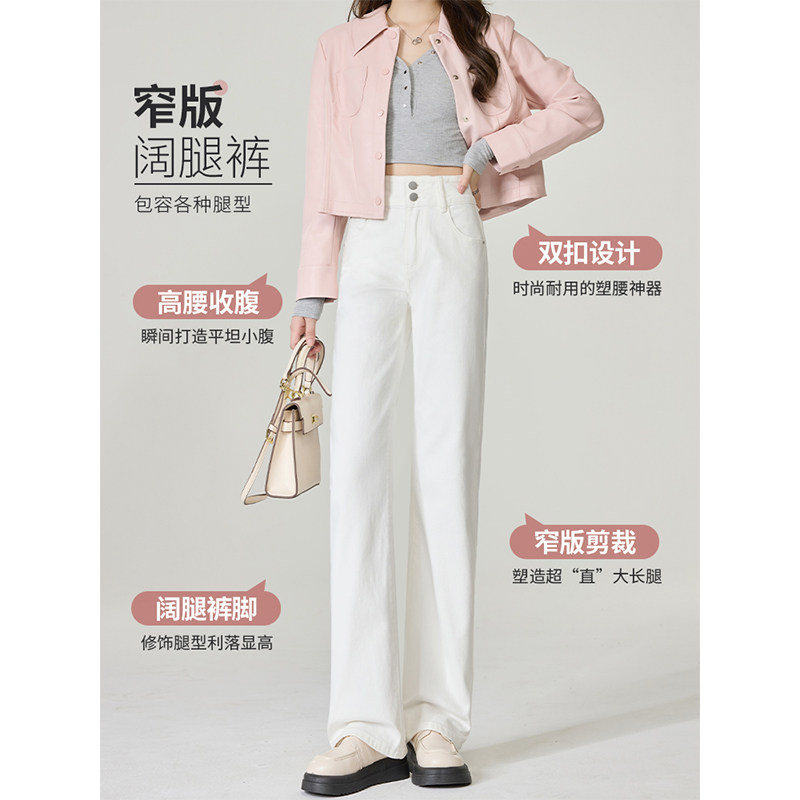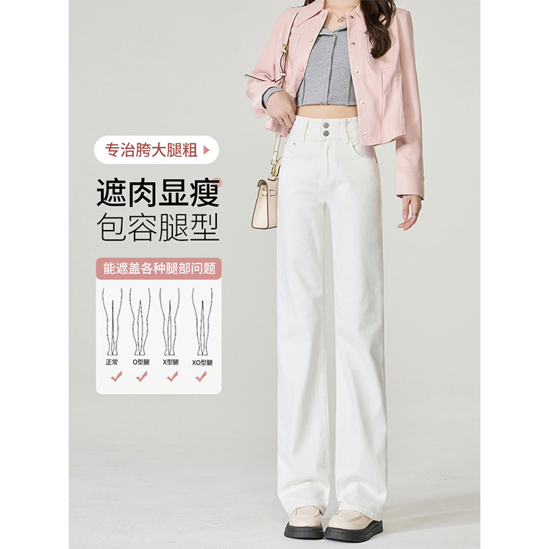 白色牛仔裤女春季2026新款爆款高腰显瘦梨型小个子高端直筒阔腿裤