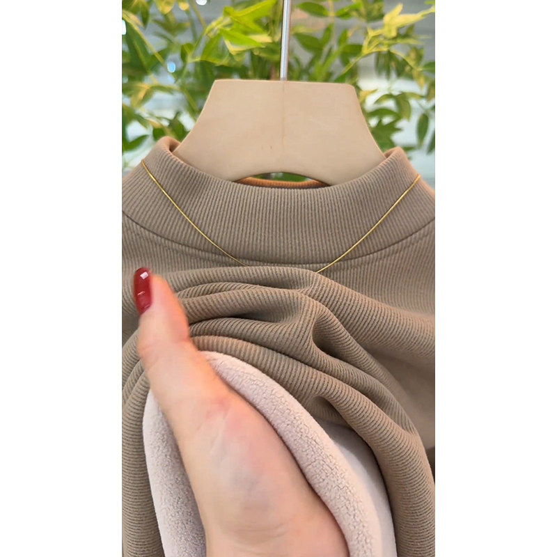 高级感加绒加厚打底衫女秋冬一体绒半高领内搭可外穿保暖内衣上衣