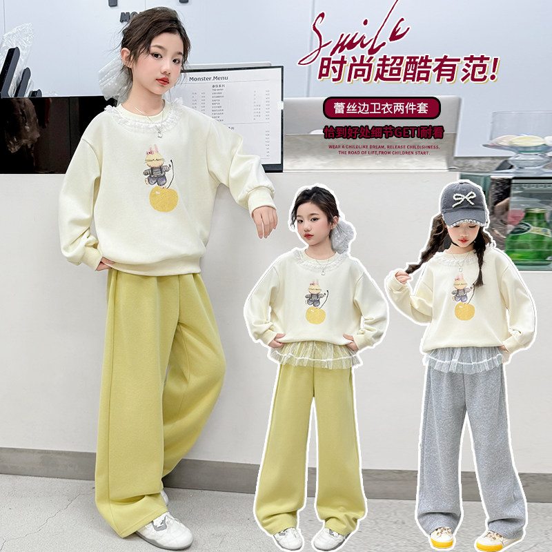 女童春装运动套装2026新款洋气春秋宽松卫衣女孩休闲阔腿裤两件套