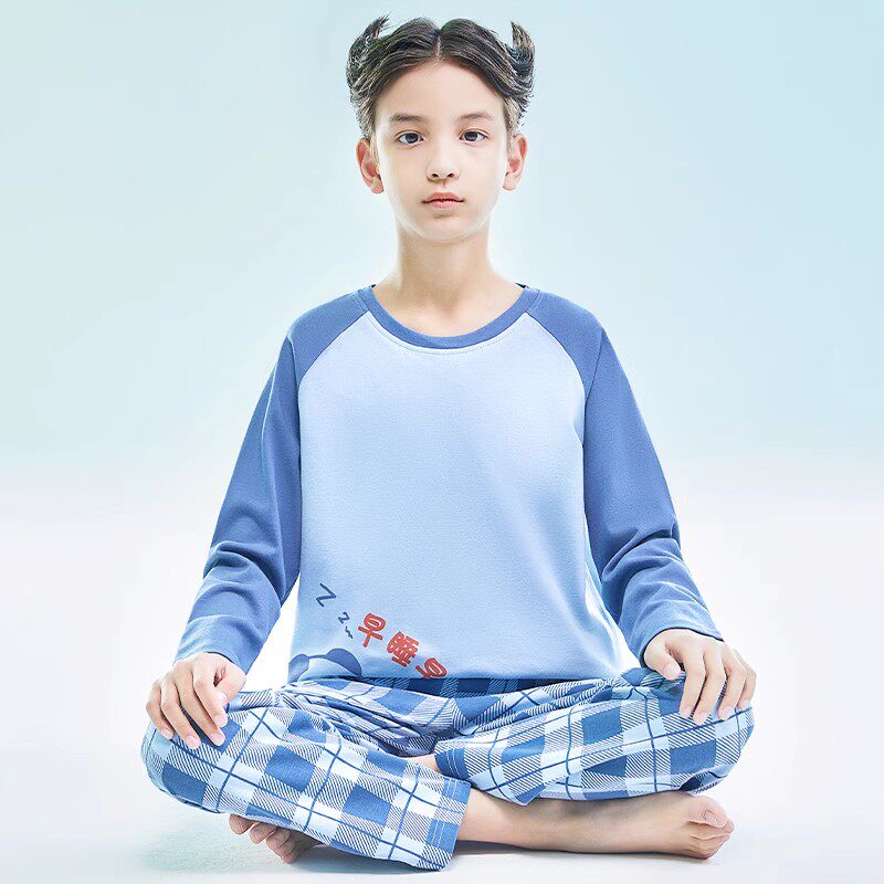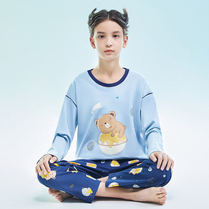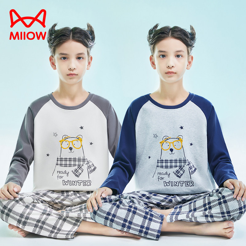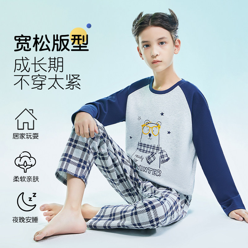 猫人男大童睡衣纯棉儿童家居服2026新款男孩春秋款初中学生青少年