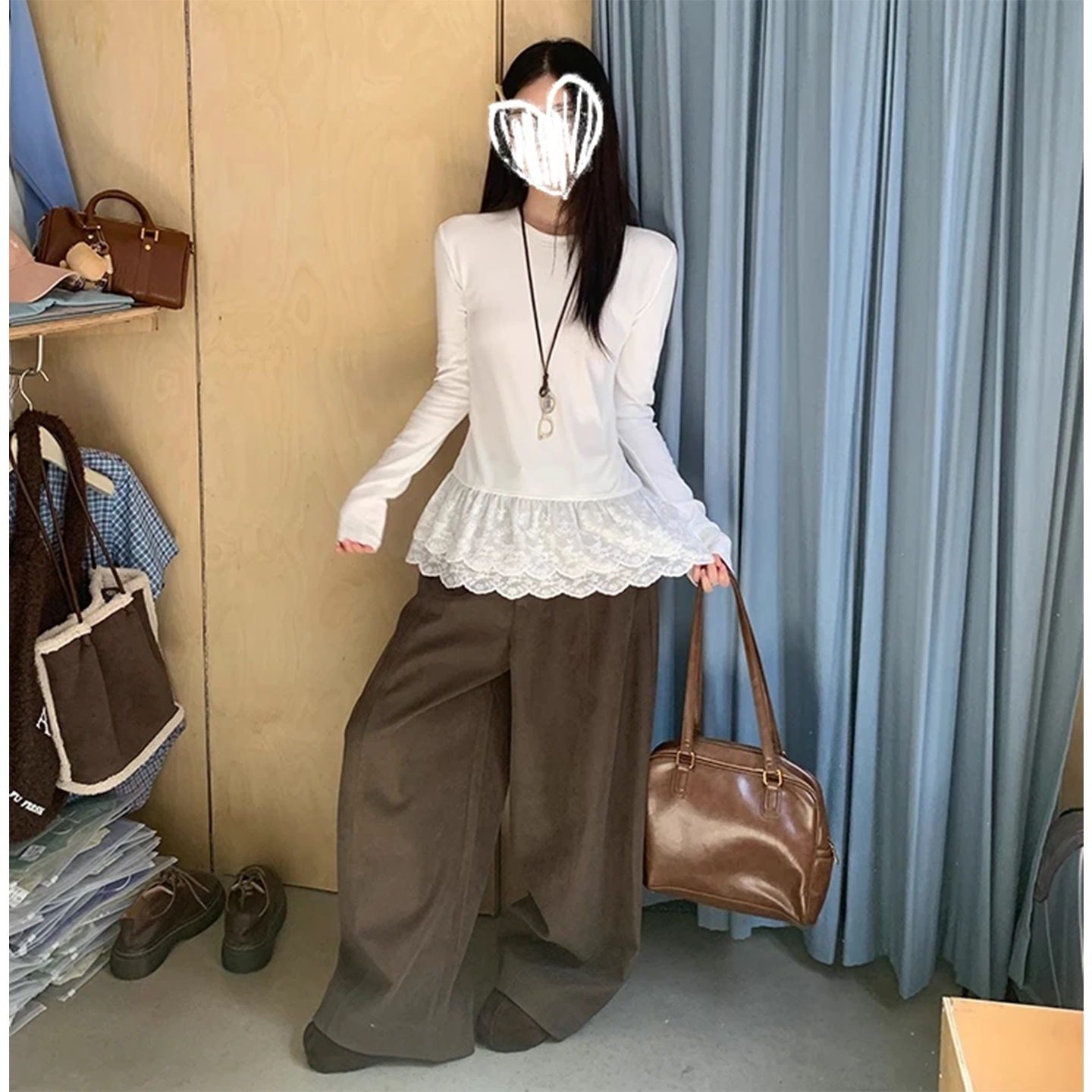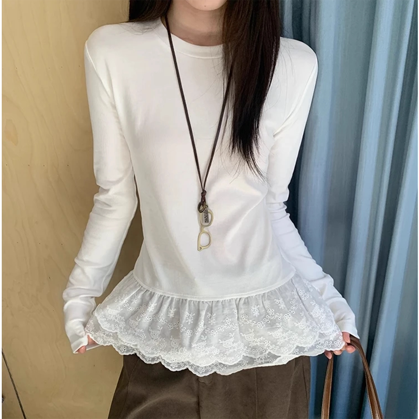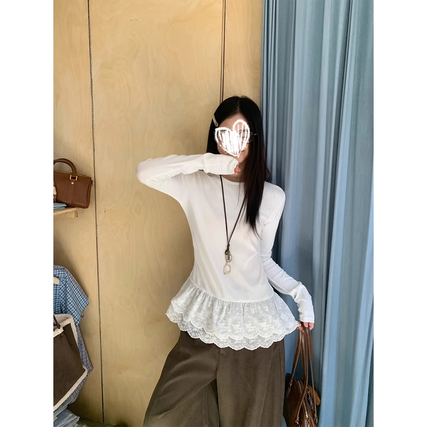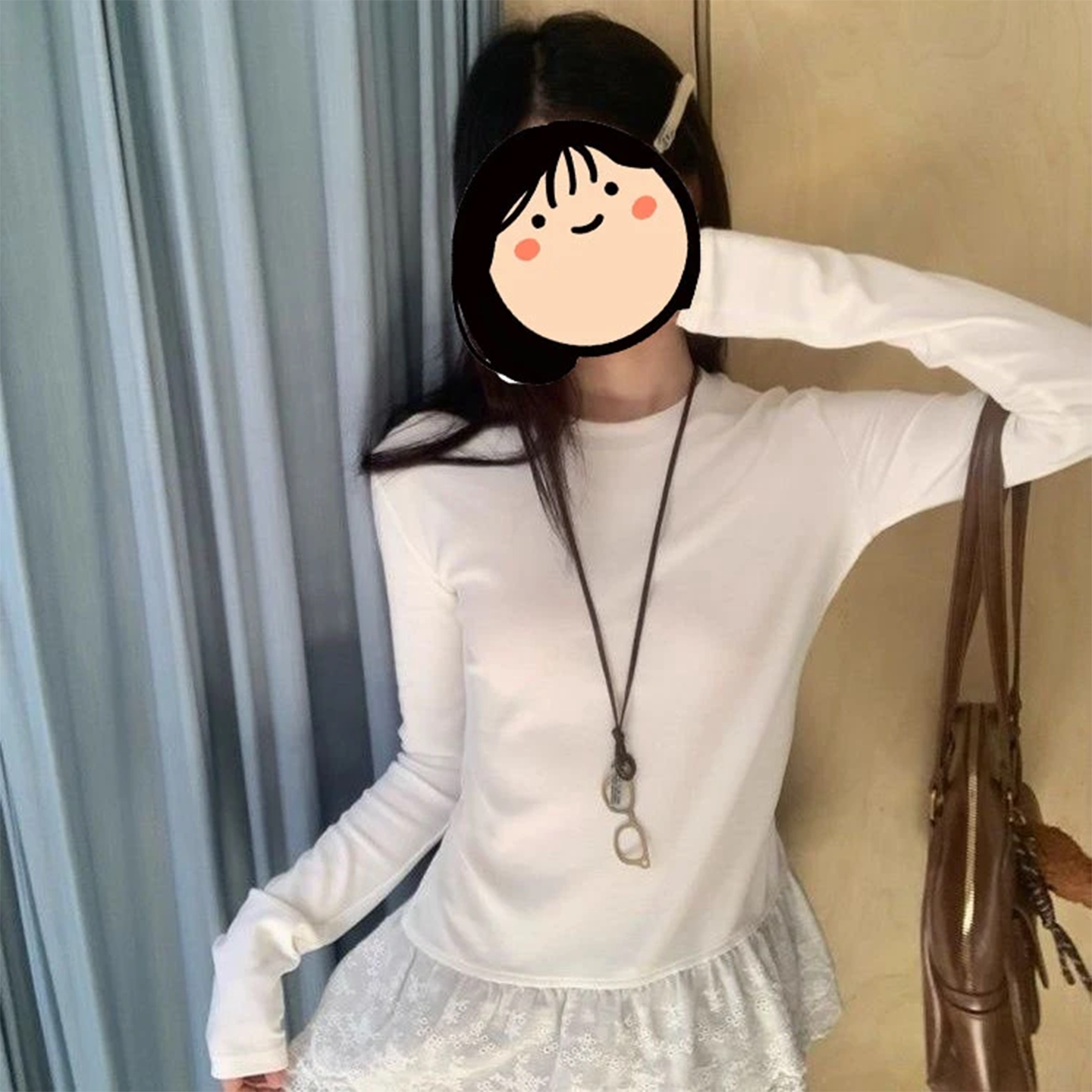 2026新款早春加绒内搭打底衫女装白色蕾丝花边保暖长袖t恤小上衣