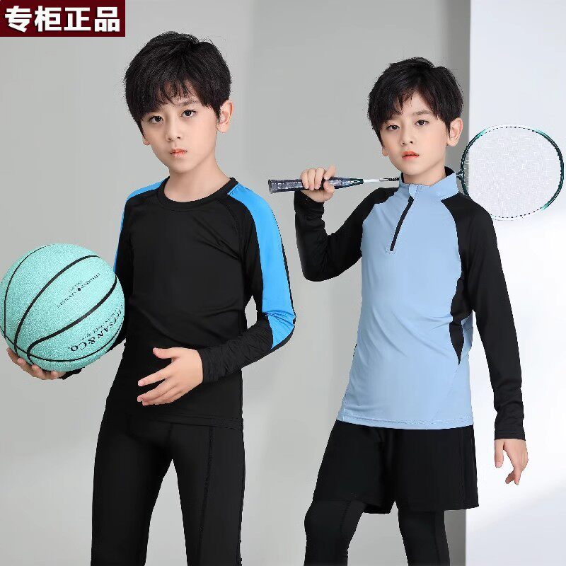 品牌乔舟儿童篮球训练服春秋运动服套装男童高弹紧身衣内衬打底速