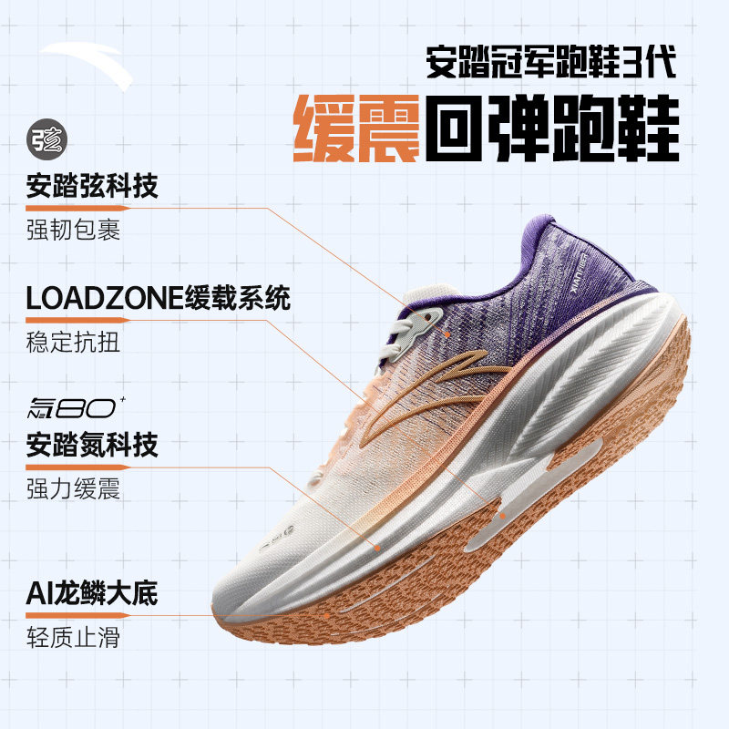 安踏冠军跑鞋3代 V3丨氮科技缓震跑步鞋新款女子长距离训练运动鞋