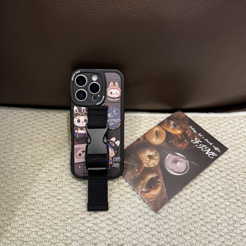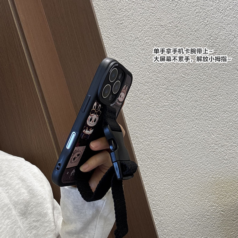 卡通小兔子适用苹果17 16 15 14Pro Max手机壳腕带iPhone13支架华为mate60 70 pura70小米15小众皮质定制型号