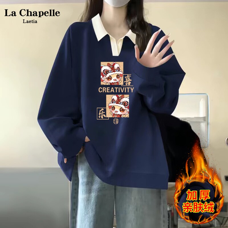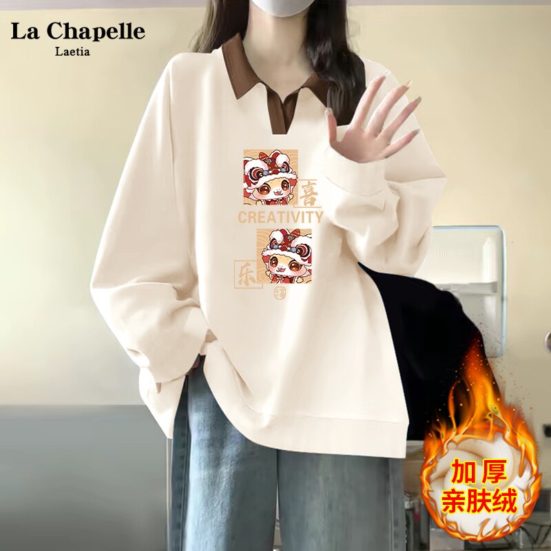 拉夏贝尔红色卫衣女款2026新款爆款本命年衣服连帽外套加绒上衣厚