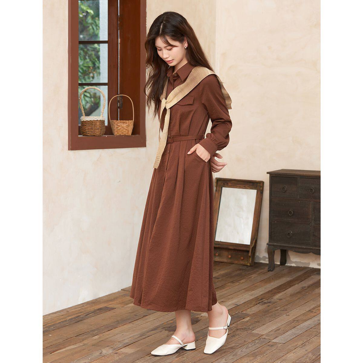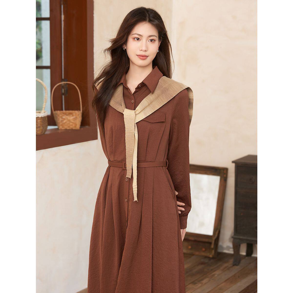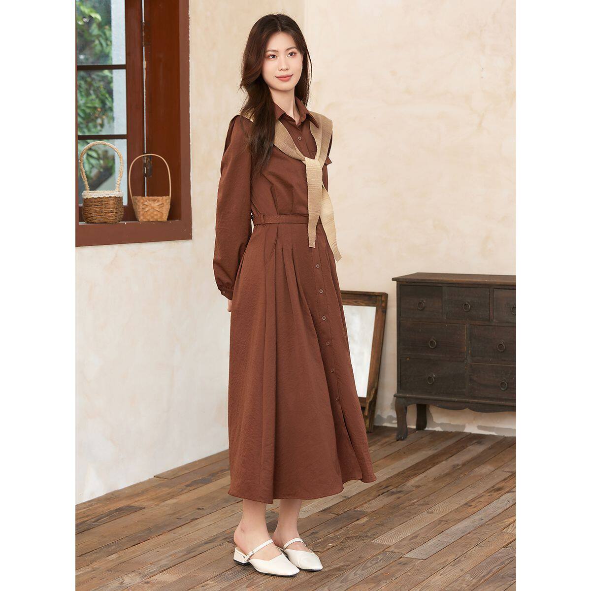 早春法式连衣裙复古气质收腰a字长袖长裙女士小个子高级感大裙摆