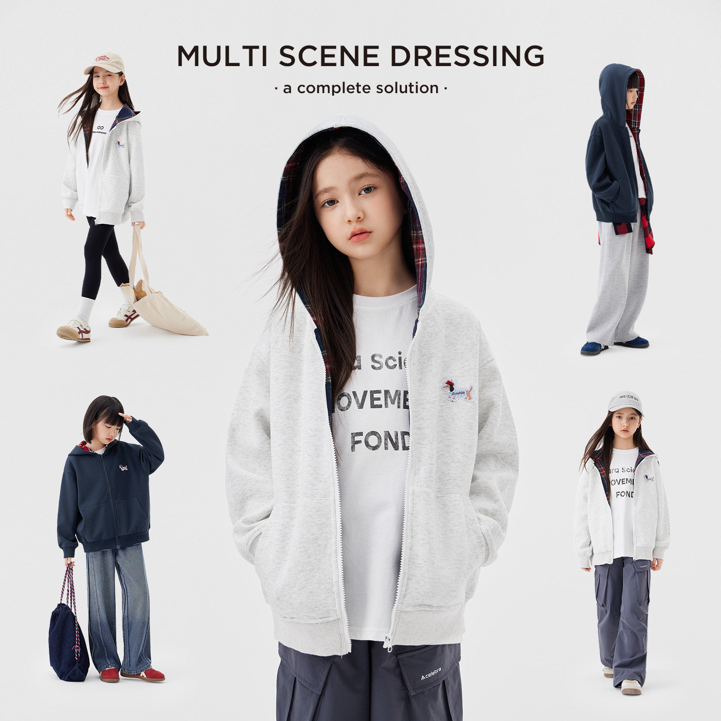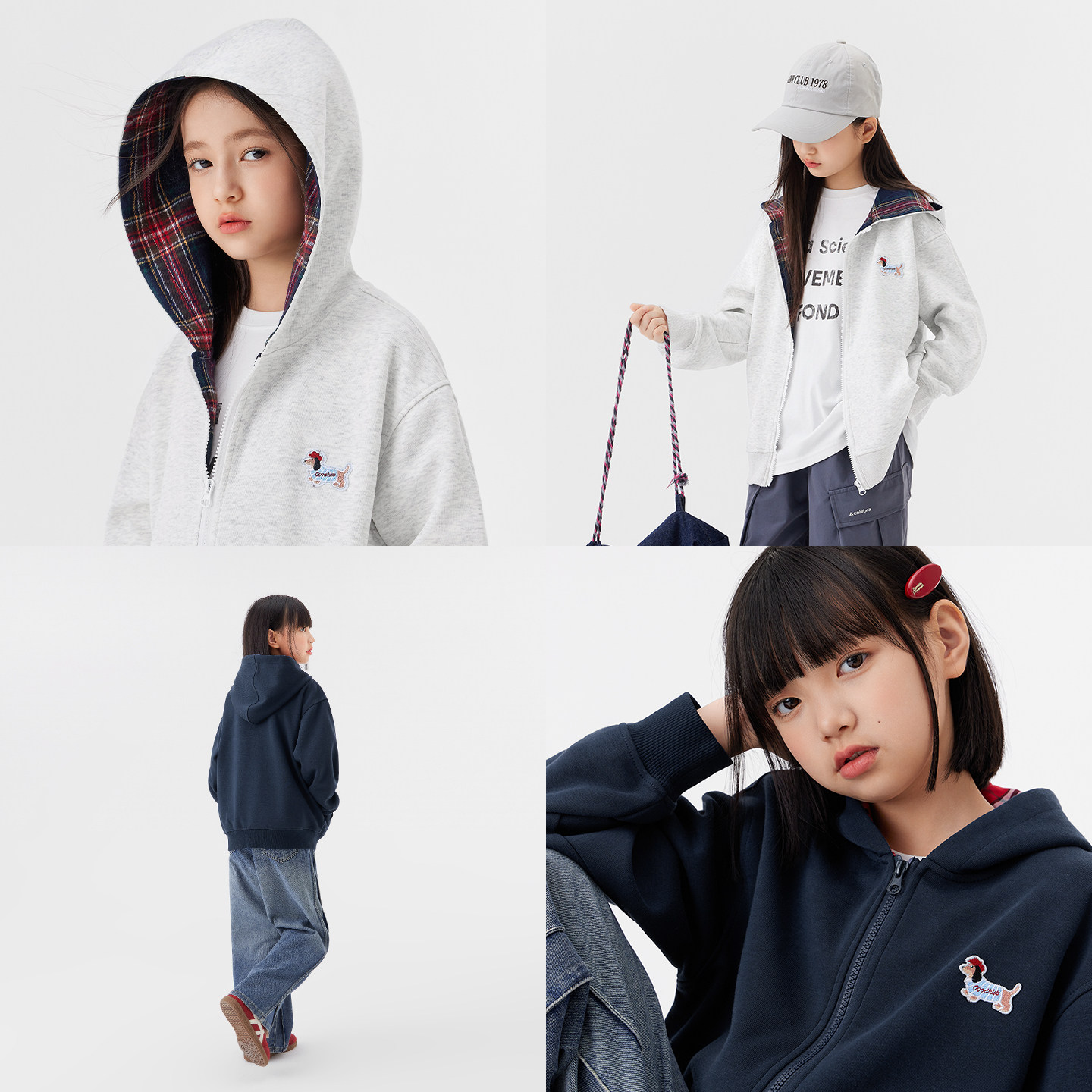 左西女童卫衣外套春秋儿童腊肠狗格子拼接连帽衫上衣2026新款春装