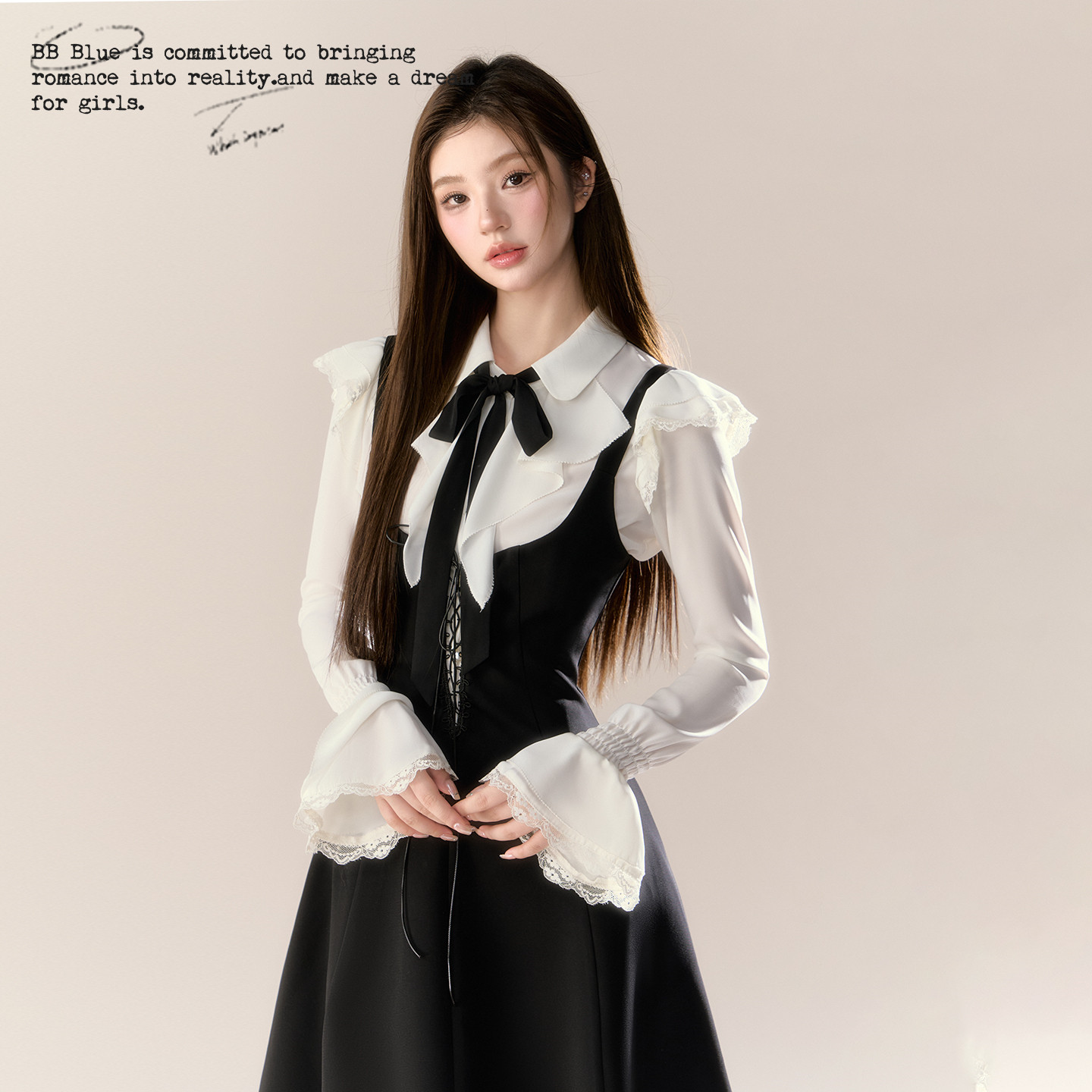 BB BLUE/幸子小姐/巨好看的早秋连衣裙套装法式长袖气质修身衬衫