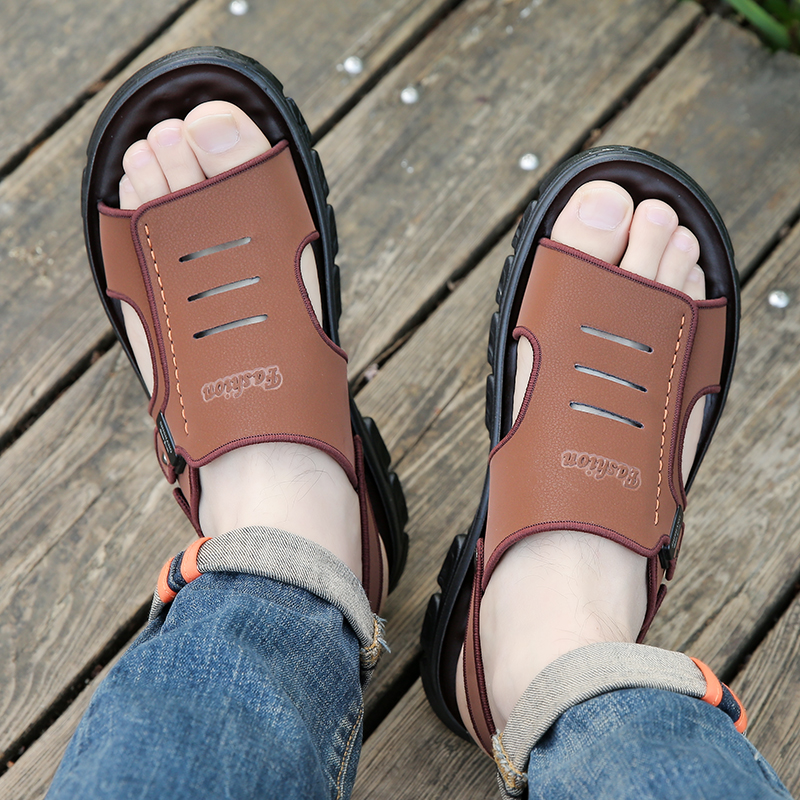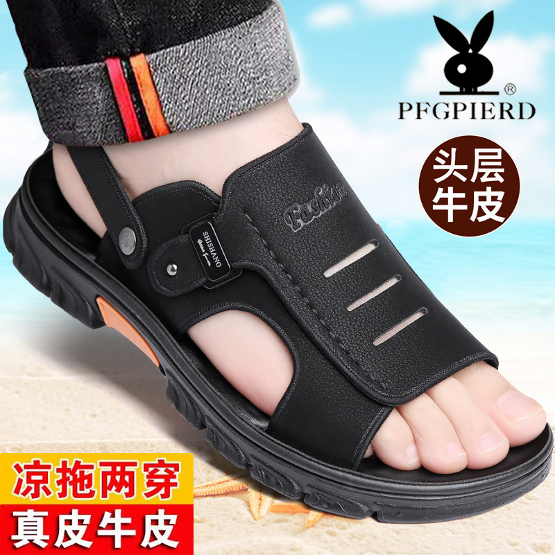 凉鞋男款2026夏季新款真皮休闲沙滩鞋厚底防滑两用中年爸爸凉拖鞋
