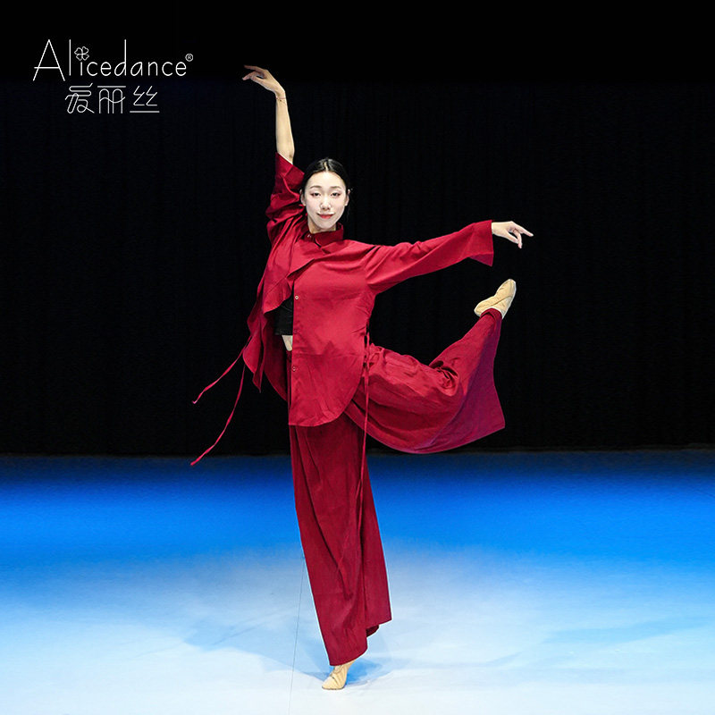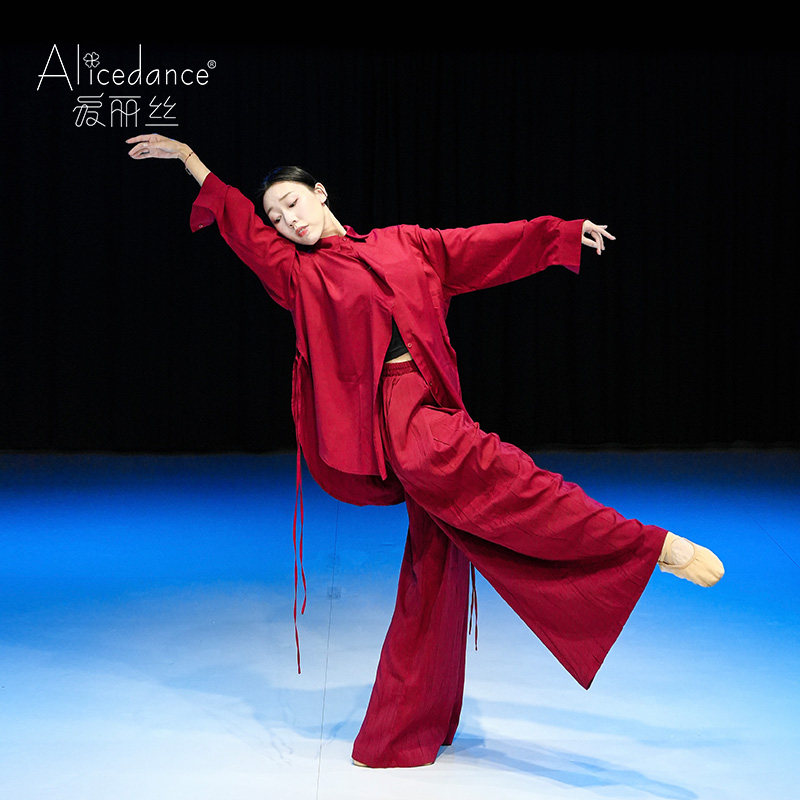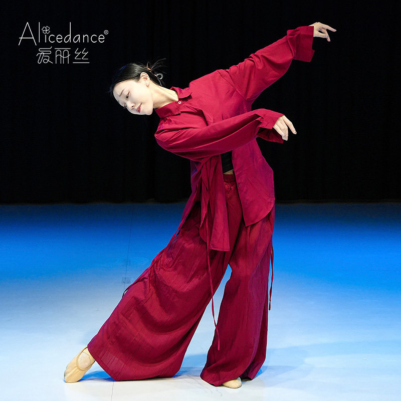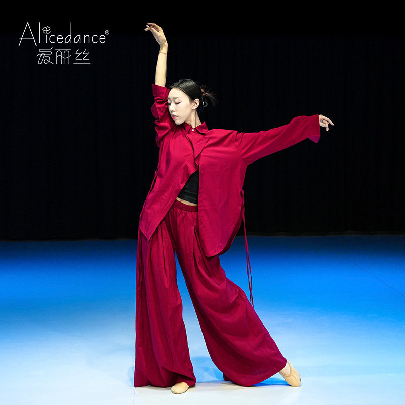 爱丽丝现代舞蹈服衬衫套装红色飘逸演出服成人春季中国舞练功服
