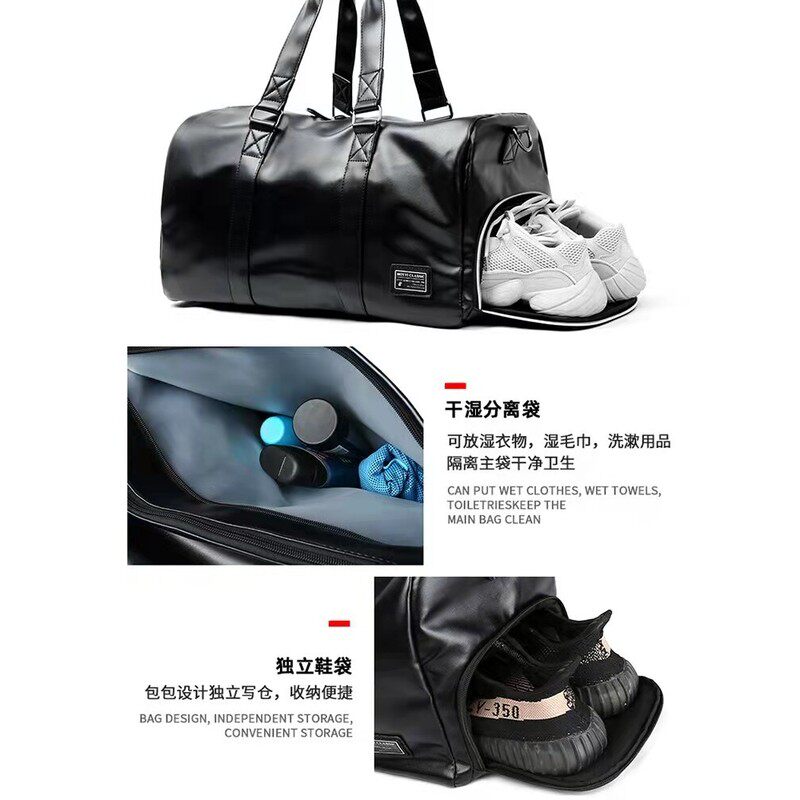 香港真皮手提包男士旅行包大容量干湿分离健身包单肩斜挎包行李袋
