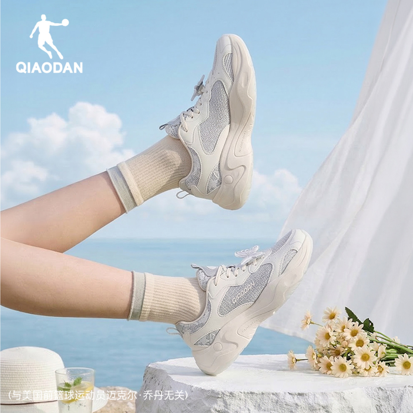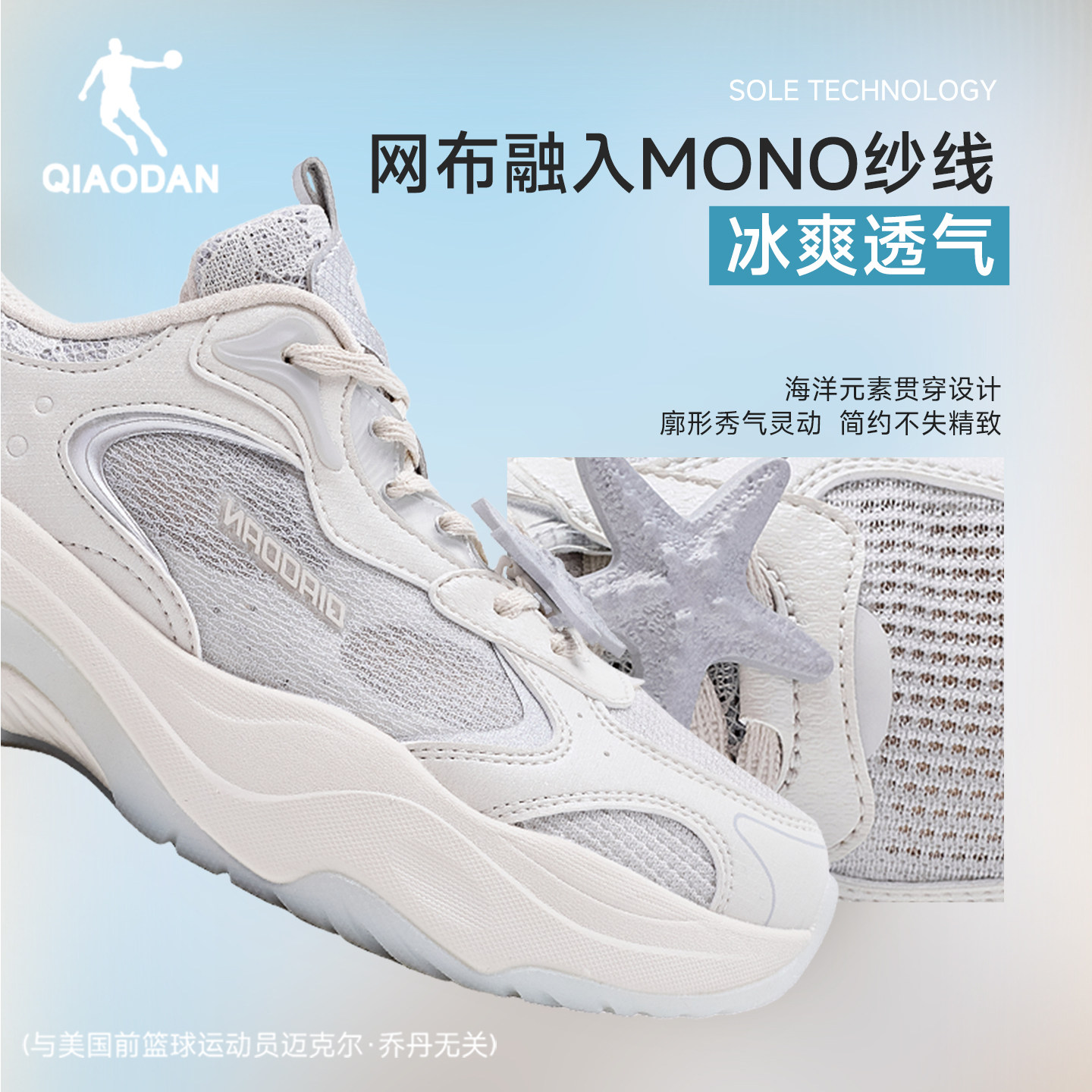 乔丹贝壳软底休闲鞋女厚底增高运动鞋夏季不累脚轻便舒适白色女鞋