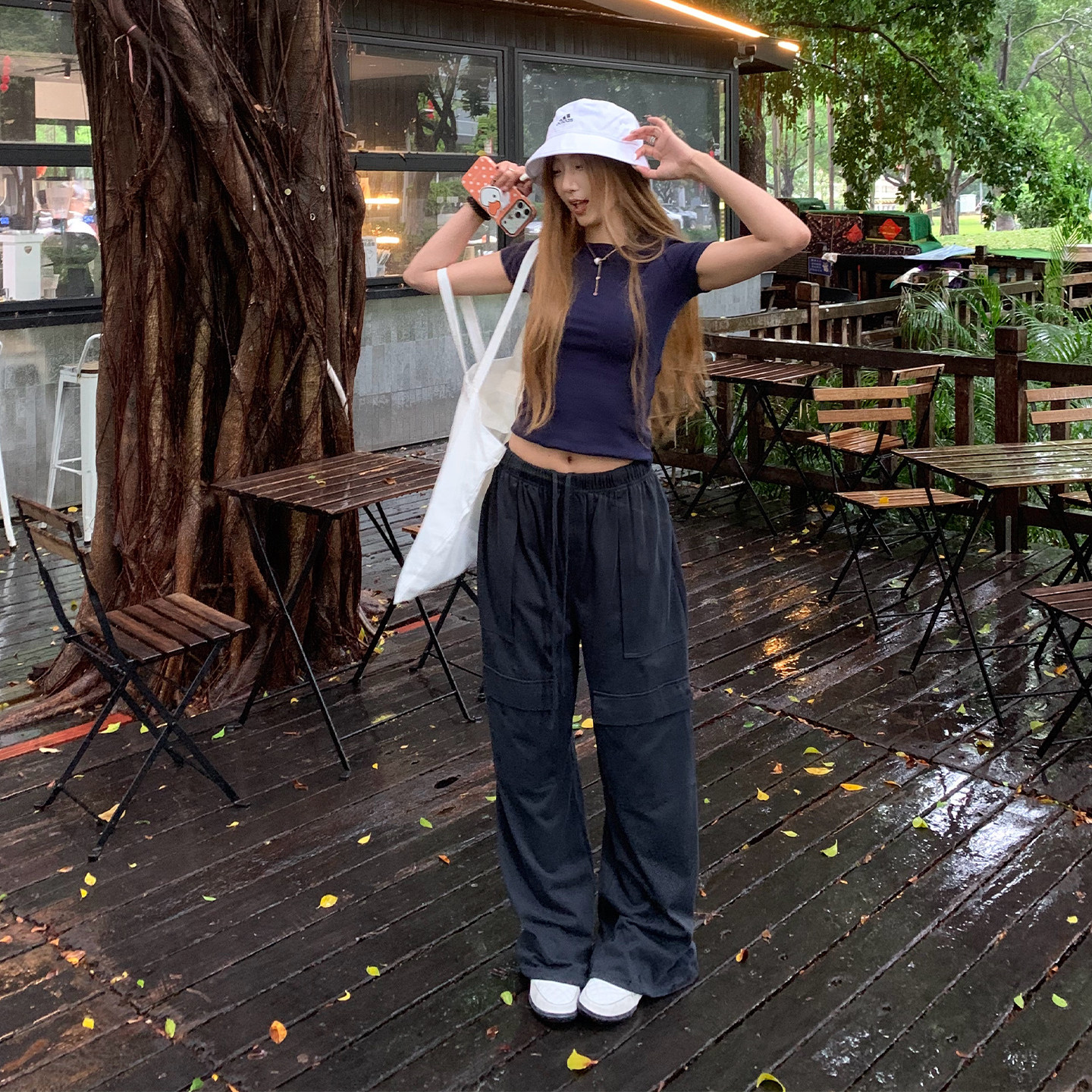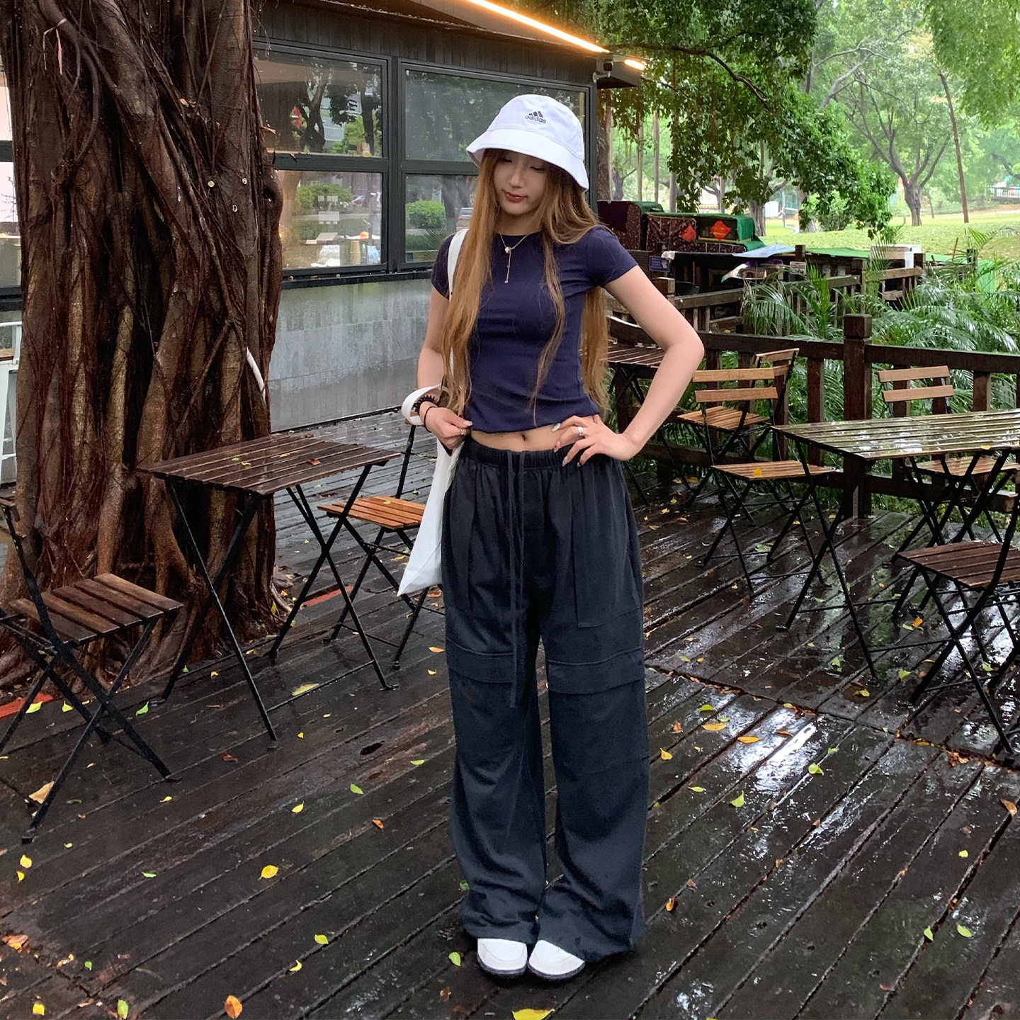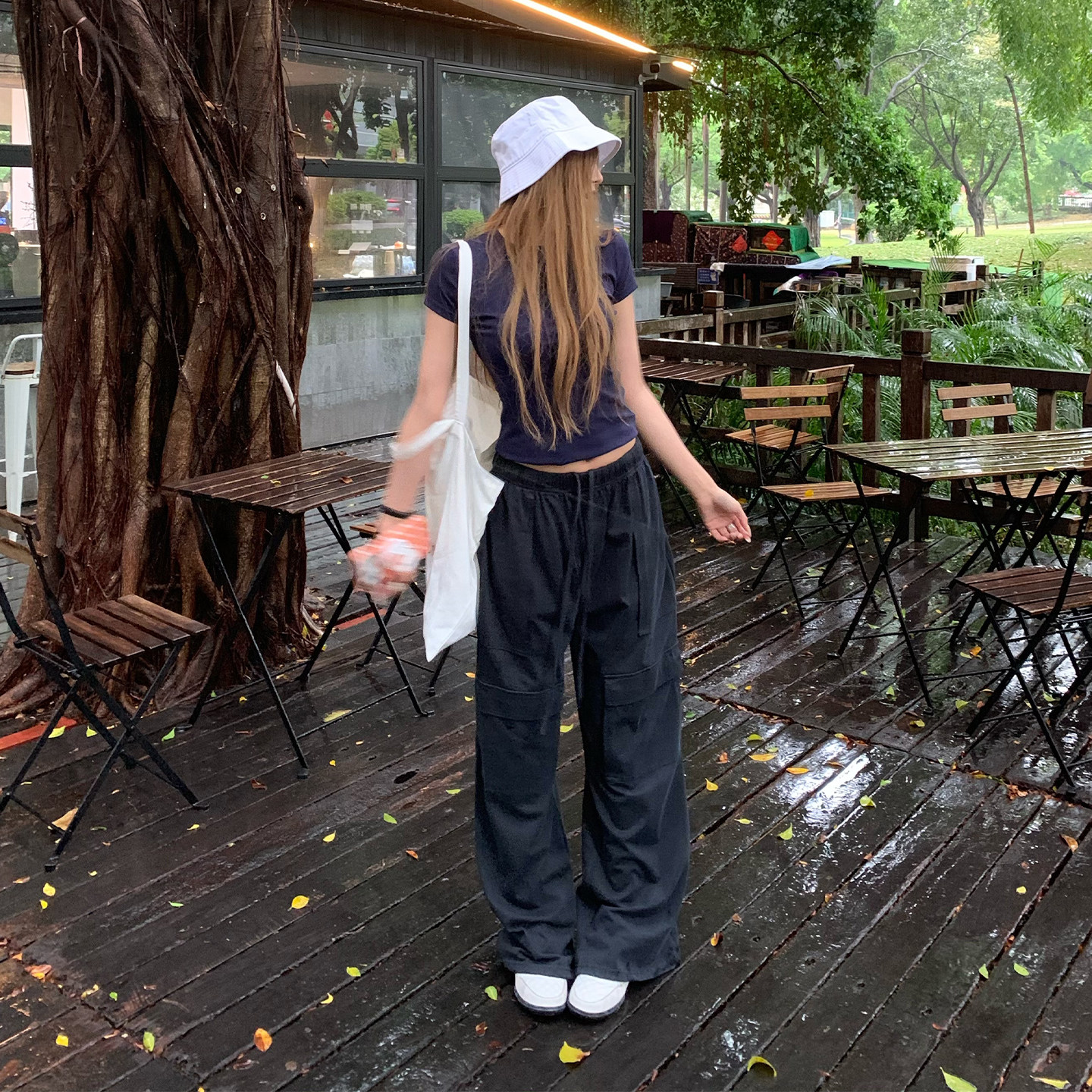 饭饭又饿了美式多口袋工装裤女款春季纯棉松紧腰宽松显瘦休闲裤子