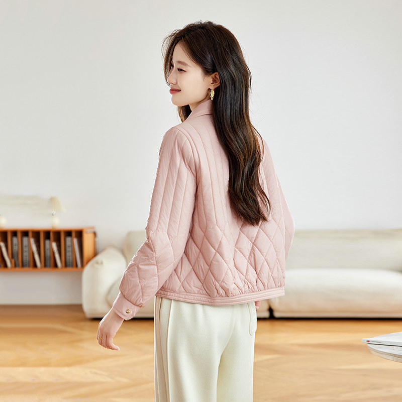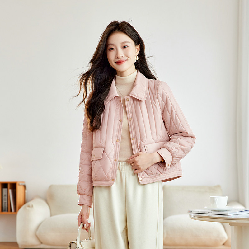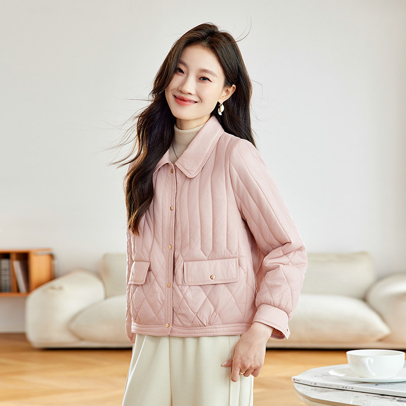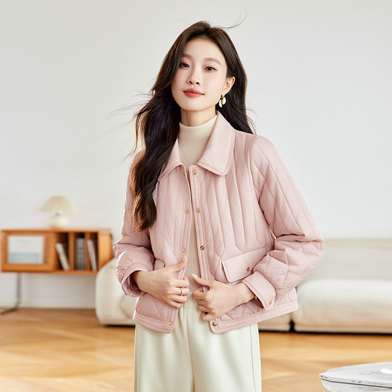 粉色短款棉服女款2026新款轻薄时尚设计感翻领宽松显瘦夹棉外套女
