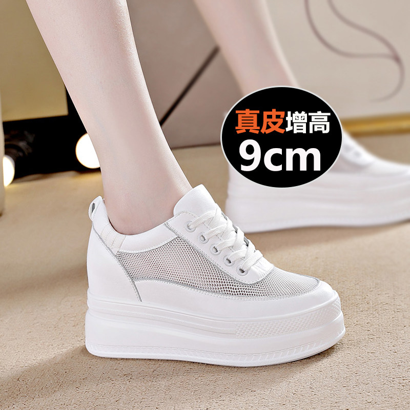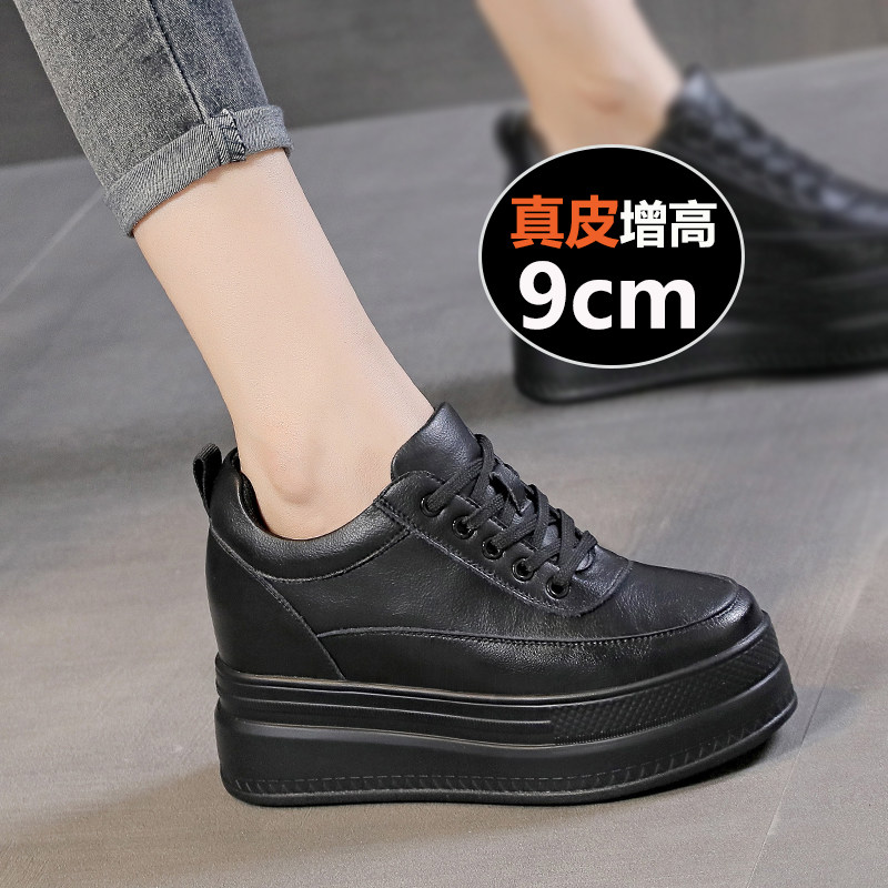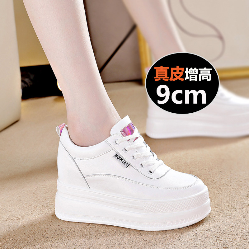 真皮小白鞋女2026新款春季内增高女鞋9cm厚底小个子休闲运动板鞋