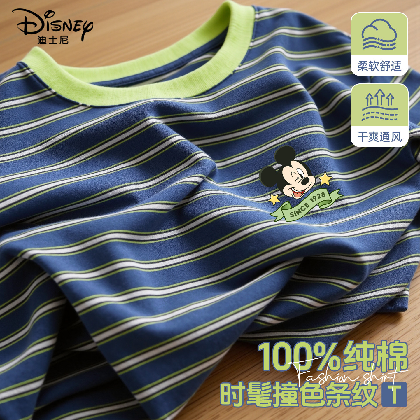 迪士尼男童短袖t恤夏薄款纯棉韩范痞帅男孩上衣2026新款儿童夏装