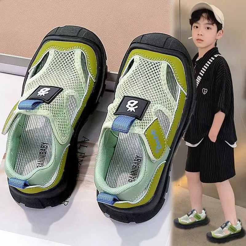 男童凉鞋薄款2026新款夏季儿童包头沙滩鞋网面透气男孩运动单网鞋