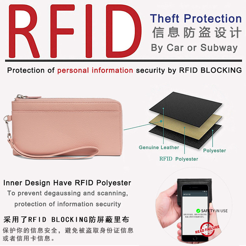时尚真皮钱包女长款超薄拉链钱包手拎防盗刷卡包牛皮零钱包日韩