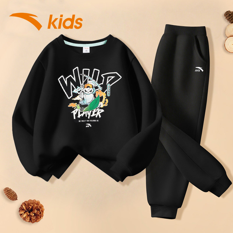 安踏童装男童卫衣套装2026秋冬新款儿童运动服套装大童休闲两件套