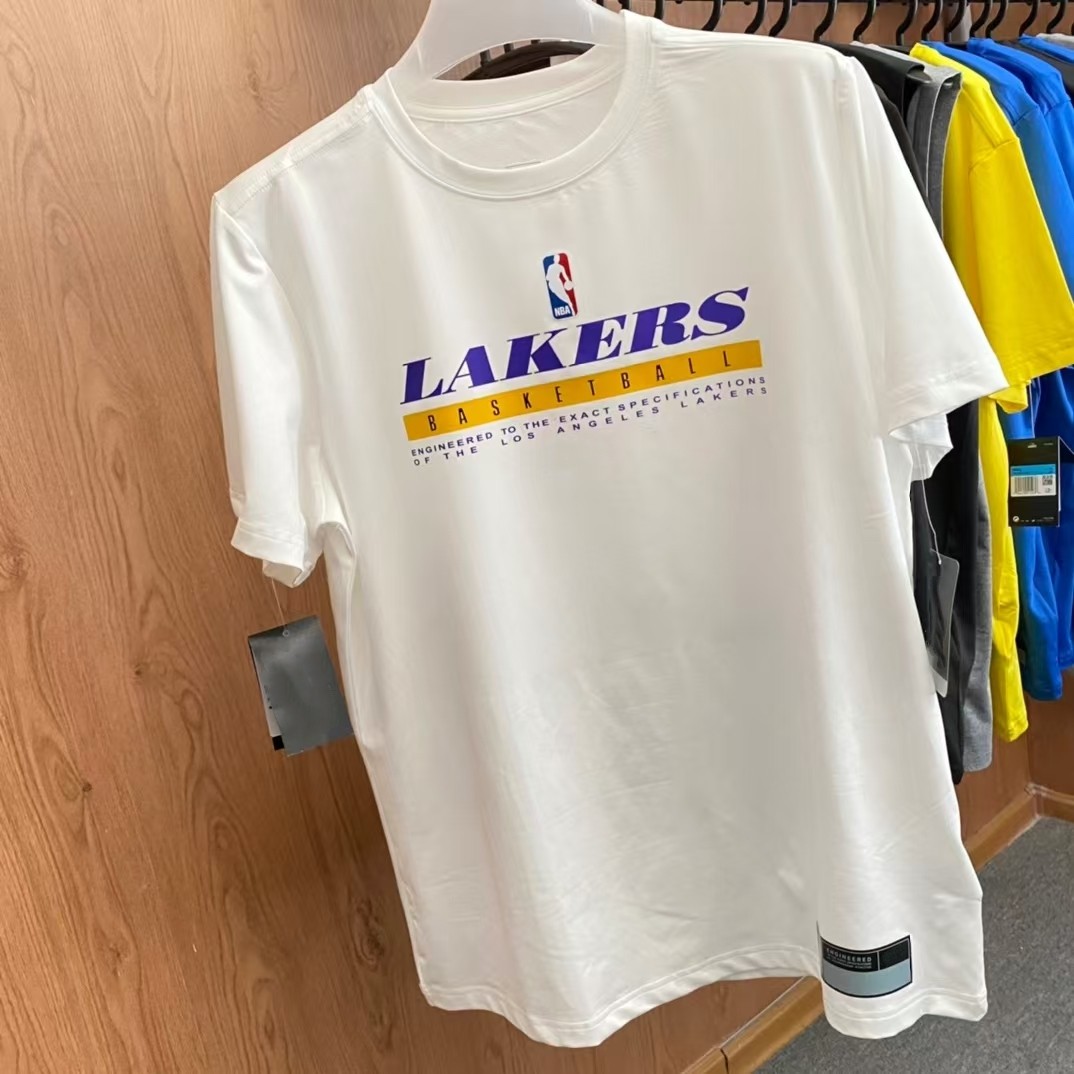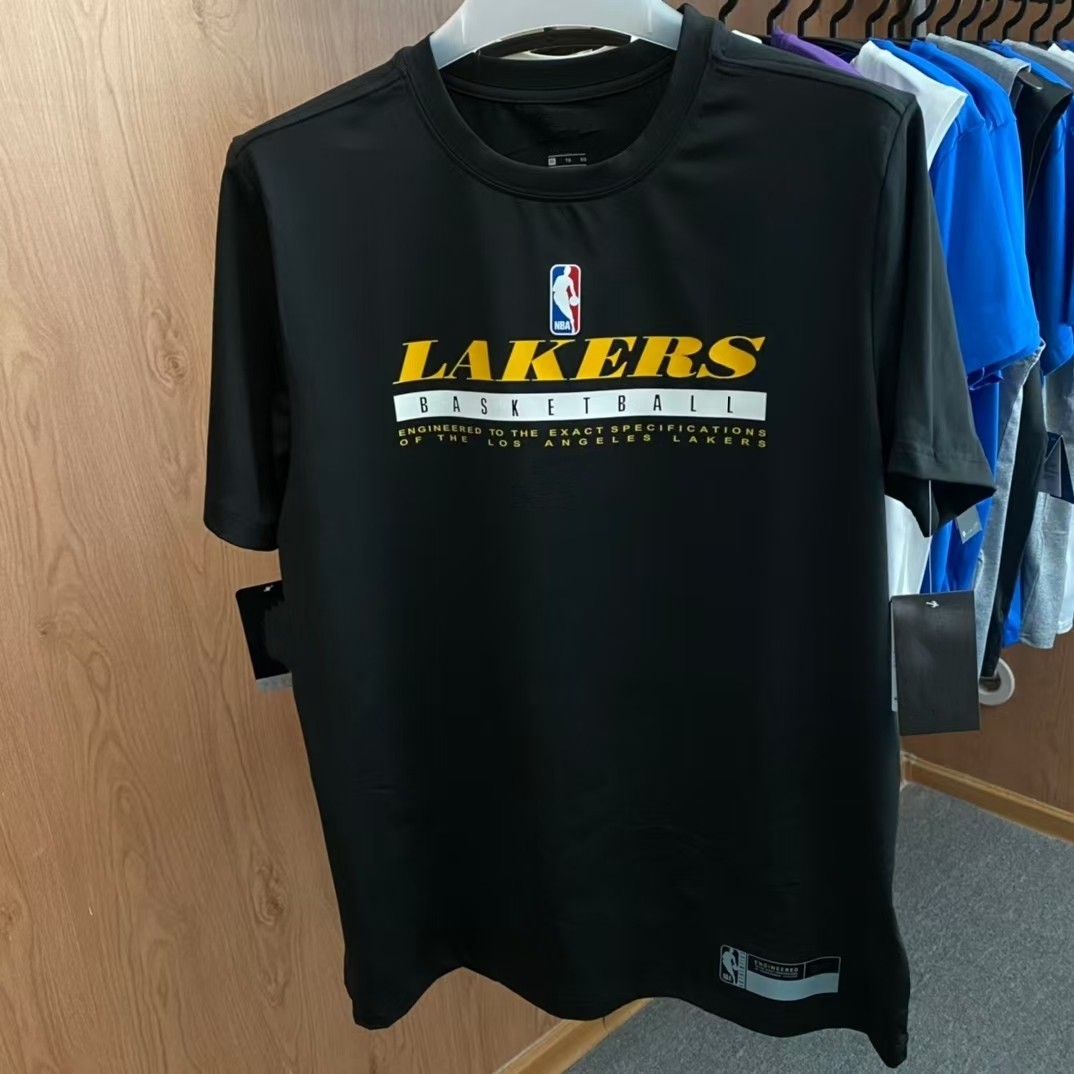 湖人队球员版热身高弹速干透气训练运动篮球短袖T恤