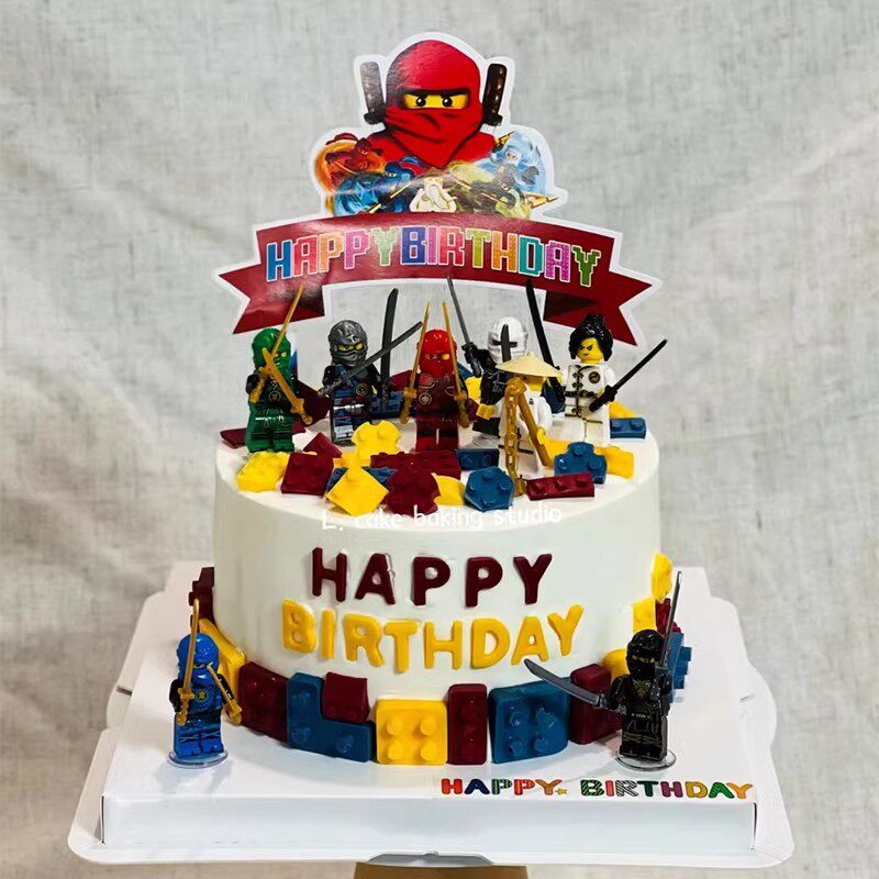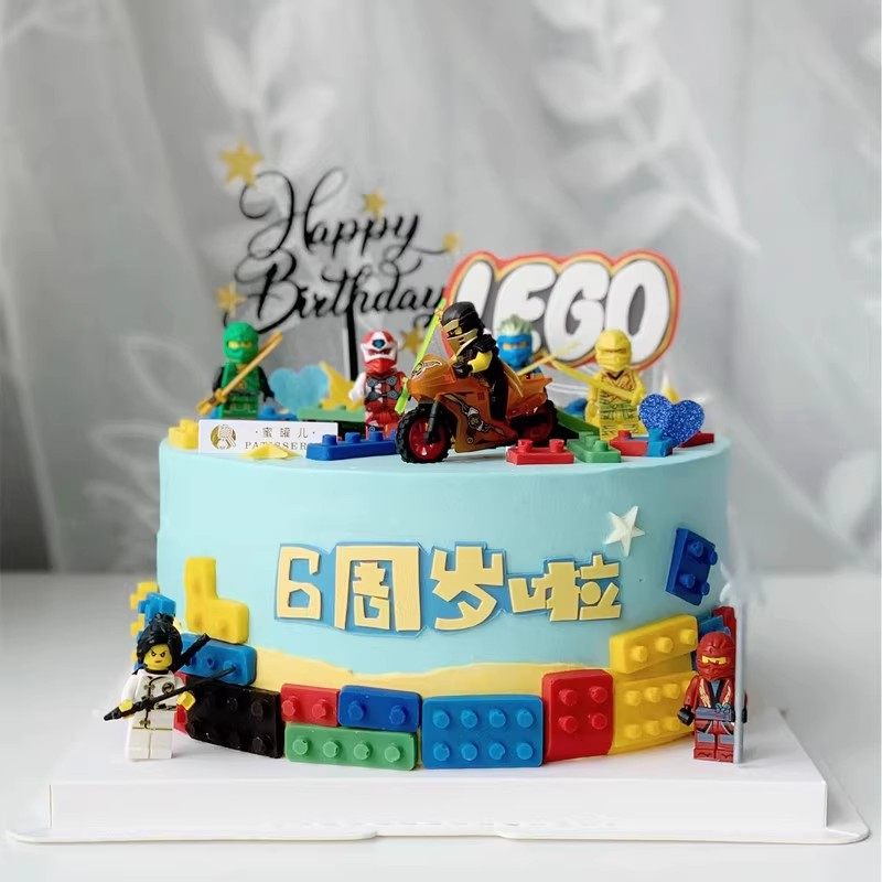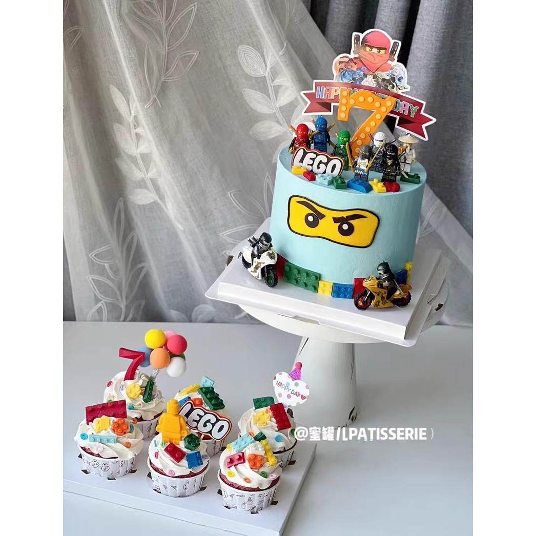 男孩生日蛋糕装饰摆件幻影忍者摩托车赛车玩具乐高积木插件插牌