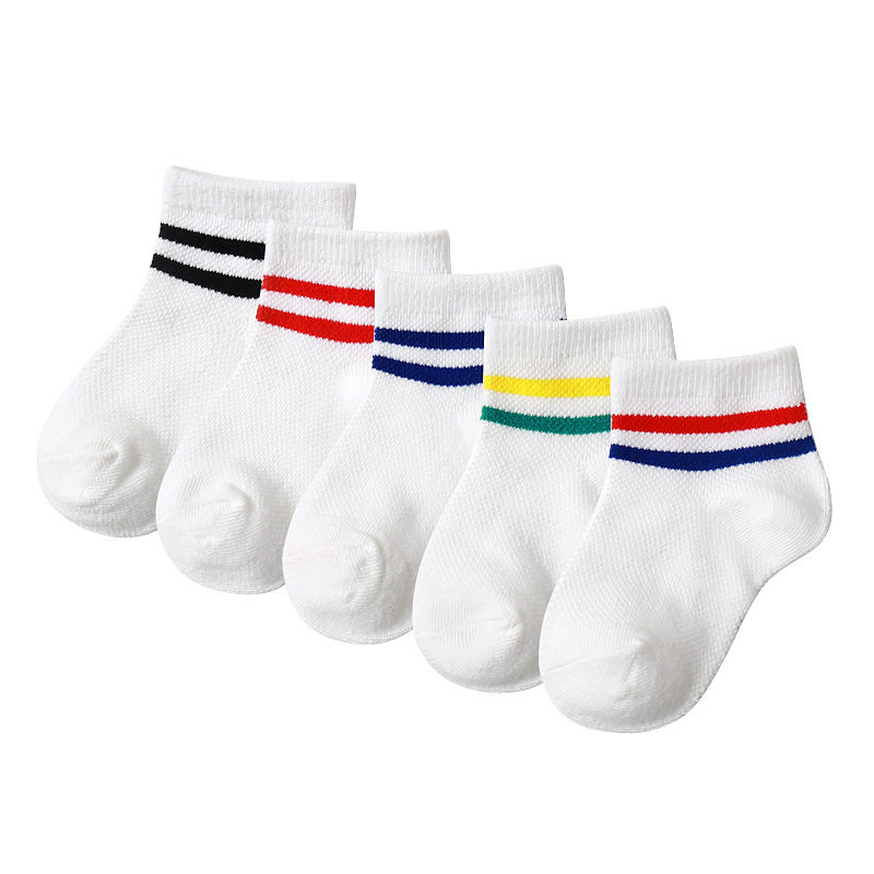 5双装 儿童袜子男女童夏季薄款春秋宝宝短袜婴儿网眼棉学院风白色
