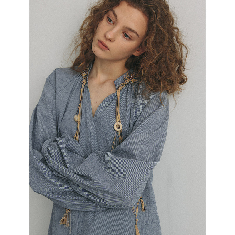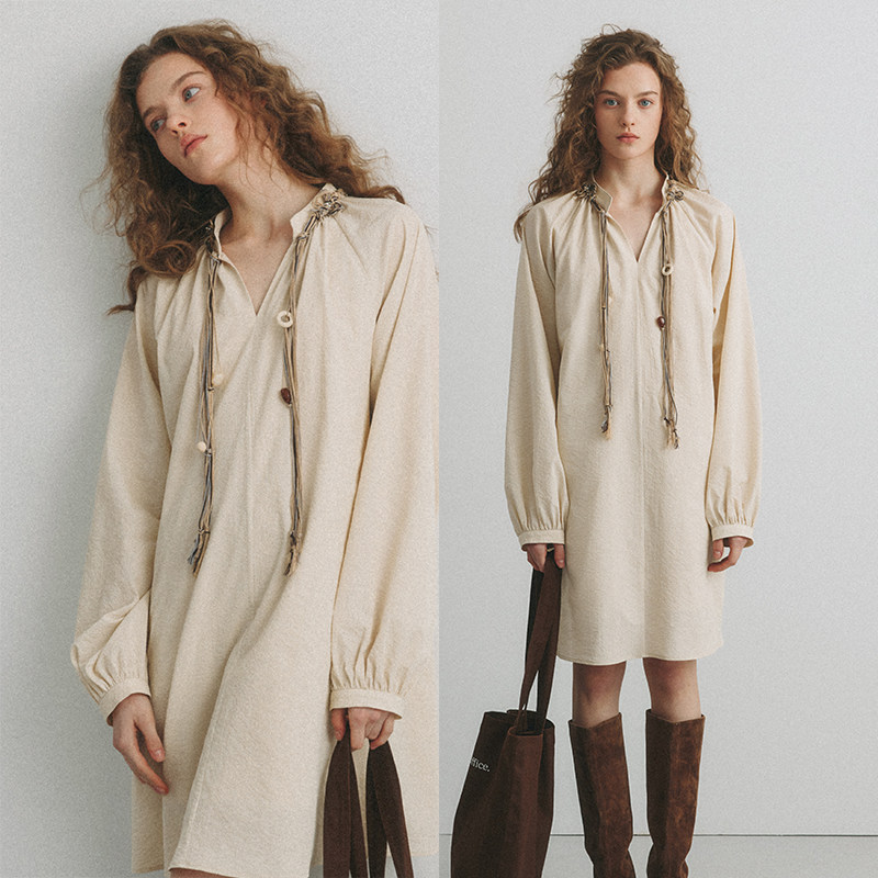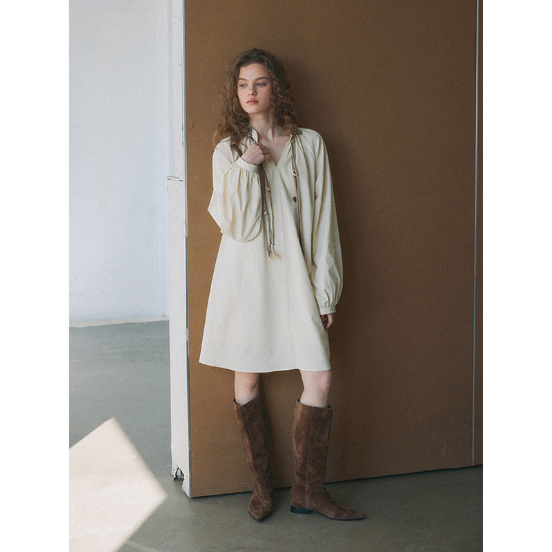 【到手359元】设计感小众V领泡泡长袖连衣裙小个子气质宽松裙子女