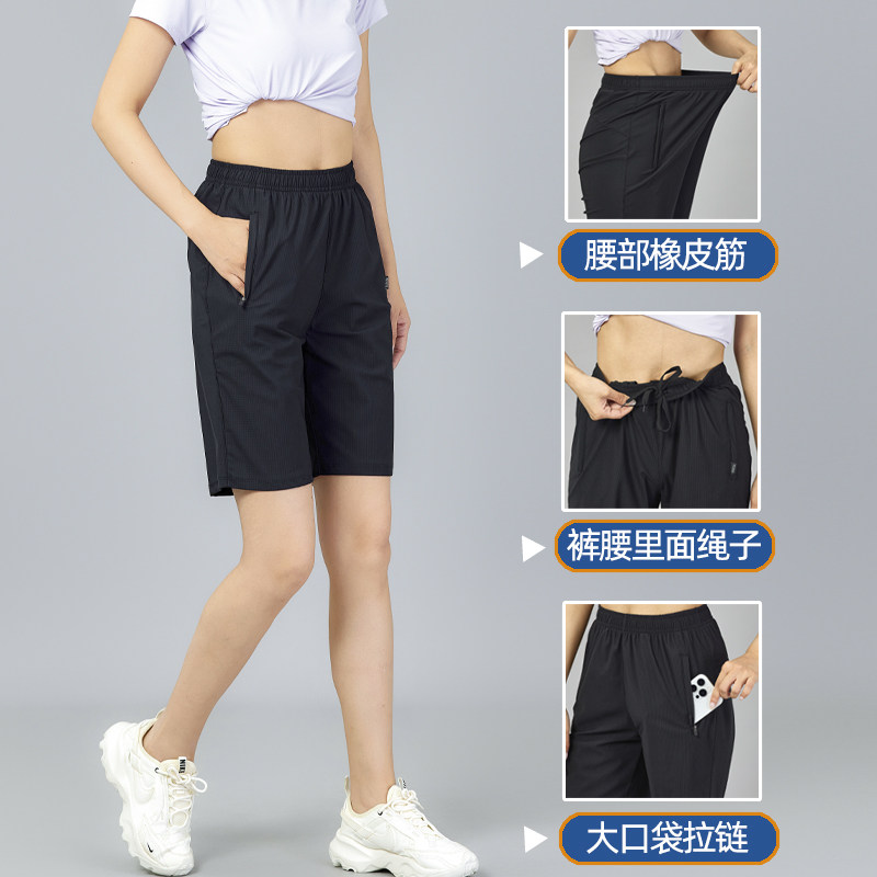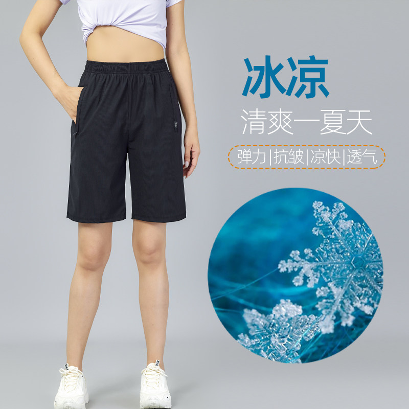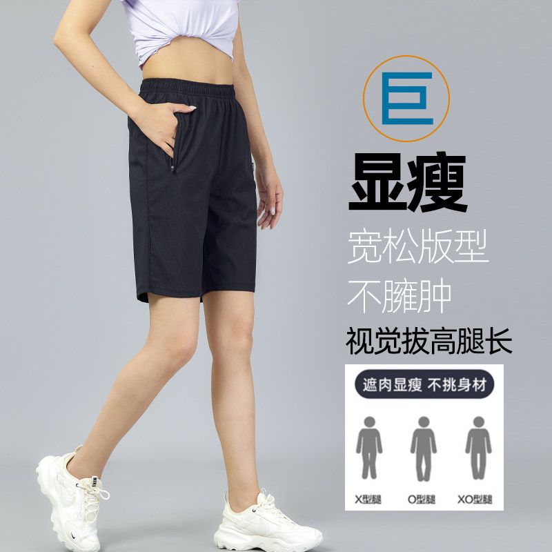 2025冰丝速干五分运动短裤女夏薄款大码健身跑步宽松休闲5分中裤