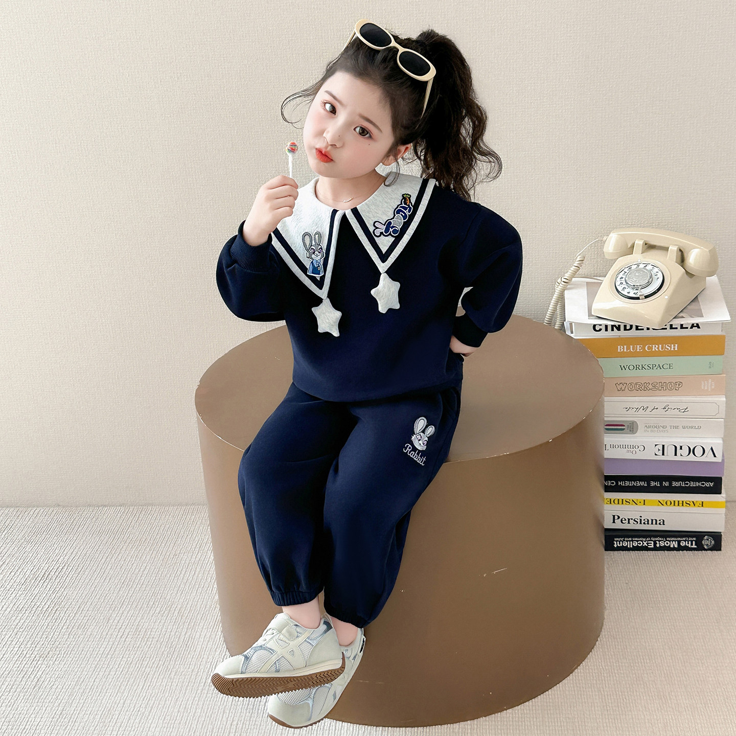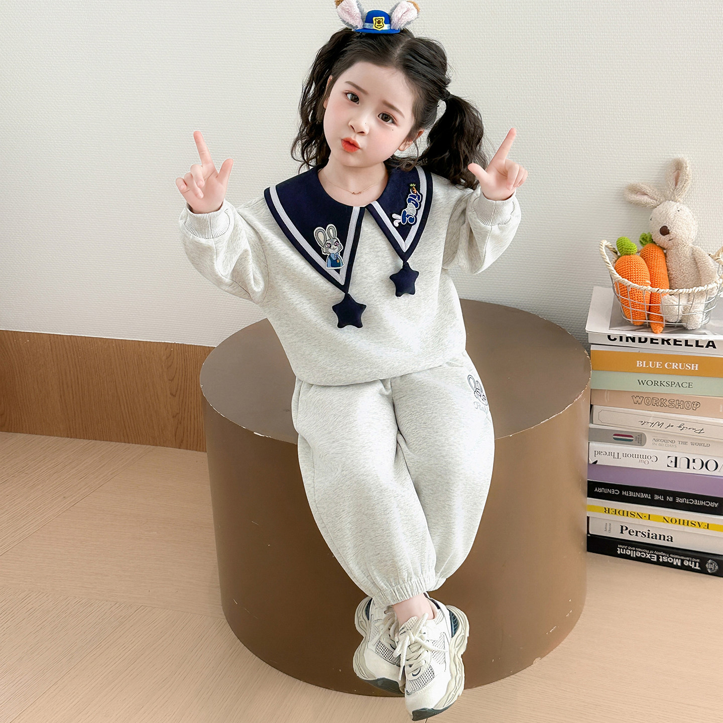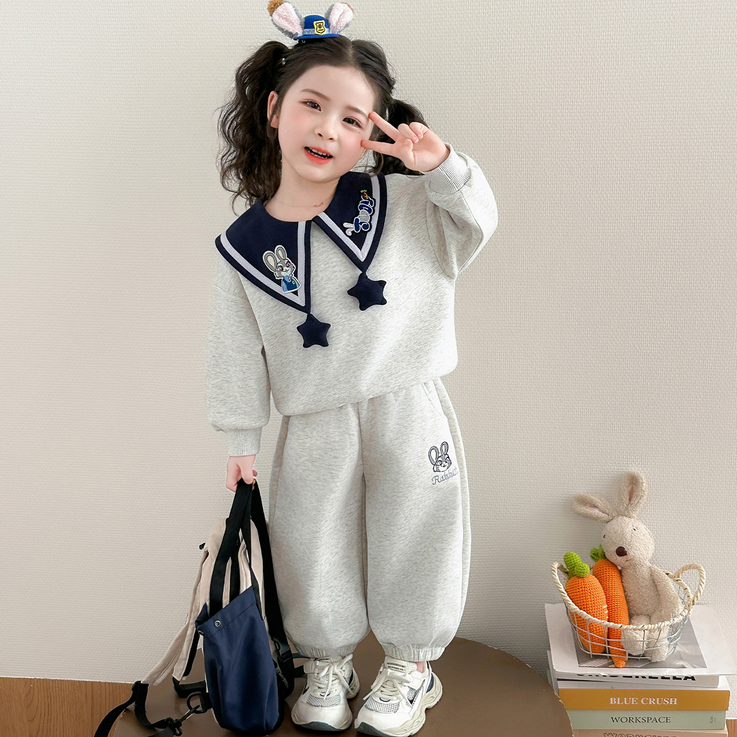 女童春装超洋气套装2026新款小女孩时髦卡通卫衣两件套女宝宝衣服