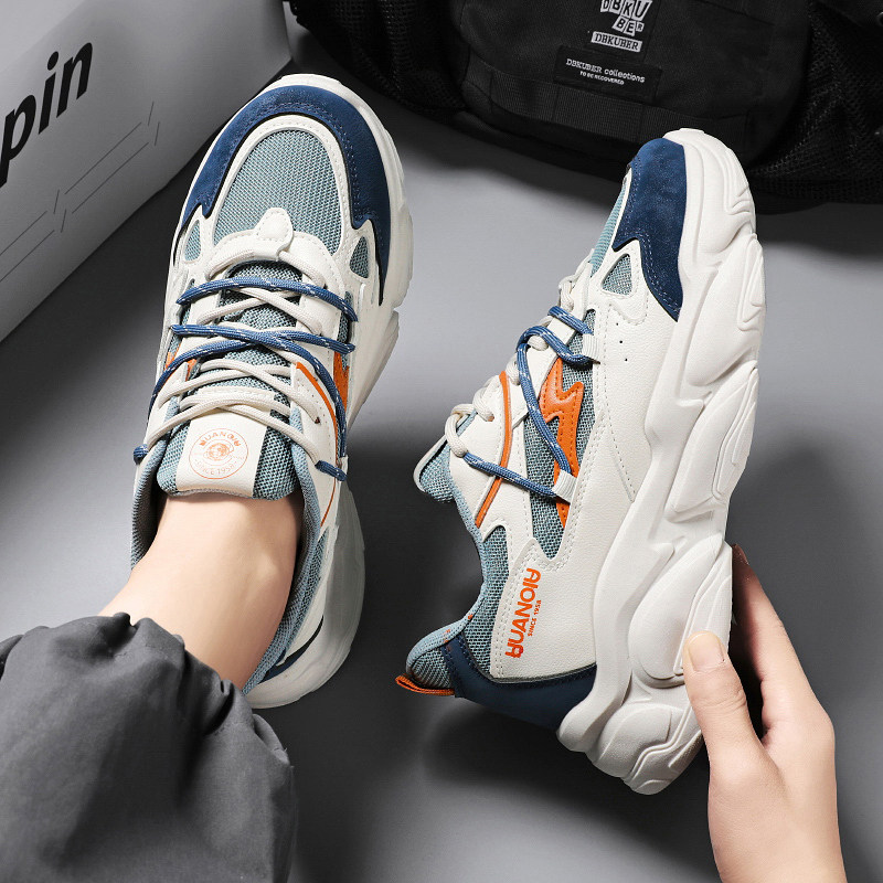 男鞋夏季网面透气防臭跑步初中生运动休闲男款内增高小白老爹潮鞋
