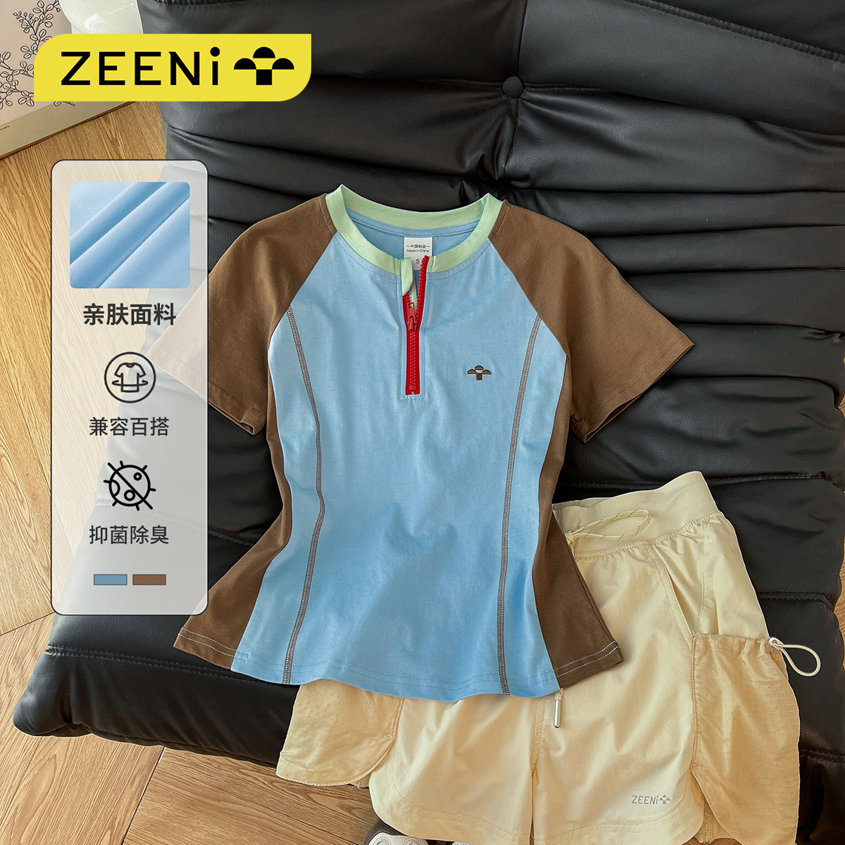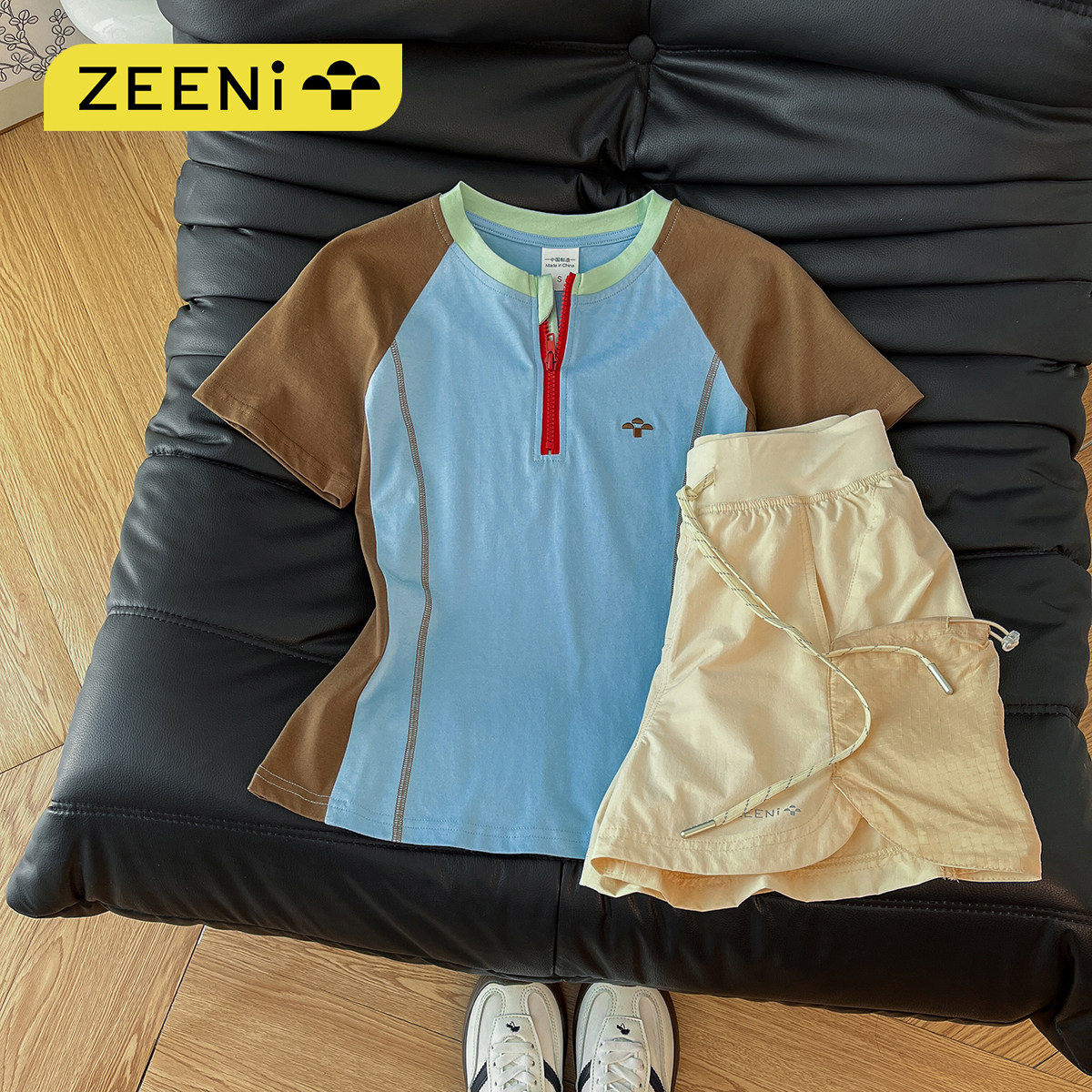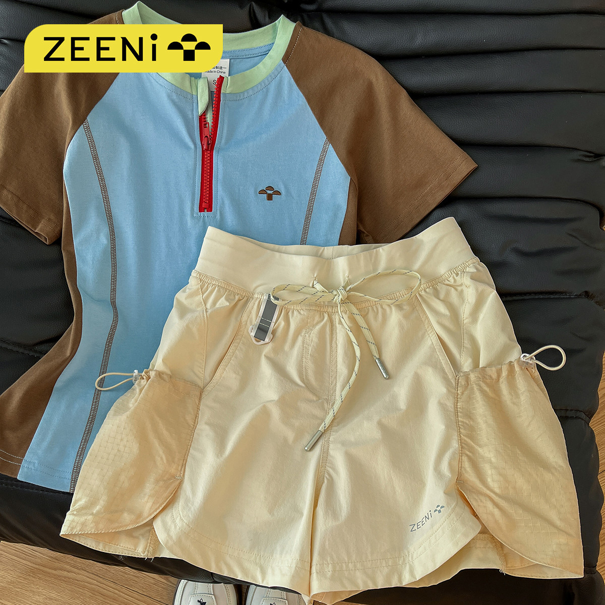 ZEENI 短袖速干衣羽毛球上衣女休闲短裤户外徒步健身运动网球套装