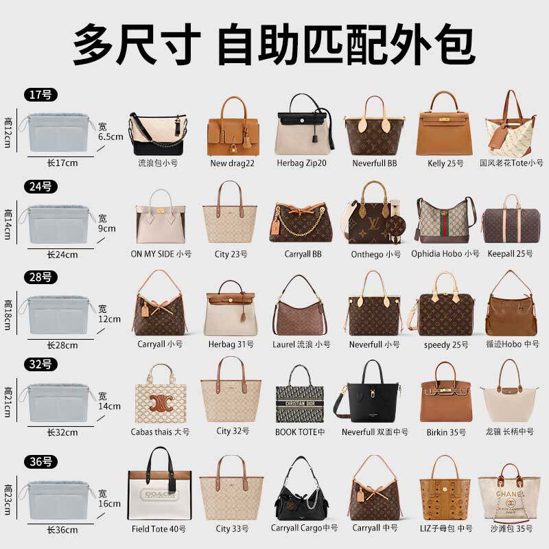 潮帛适用托特包中包内胆缎面lv龙骧迪奥tote收纳珑骧hobo包内置袋