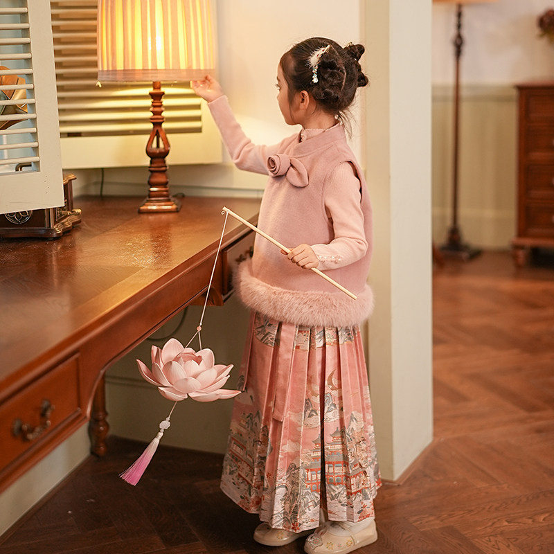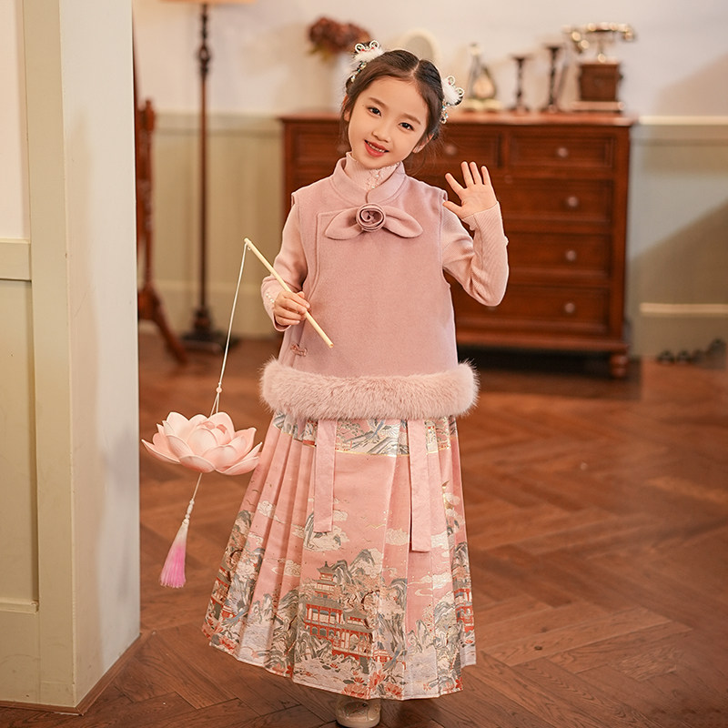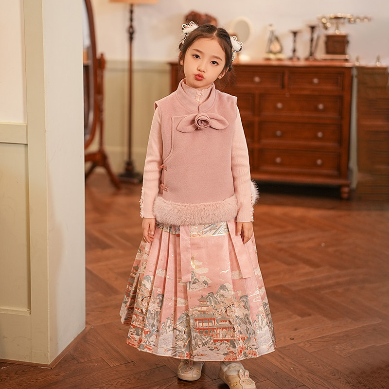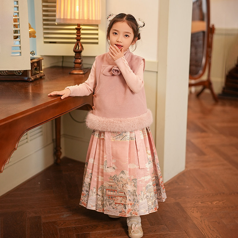 2026冬季女童年服国风上衣马甲汉服马面裙套装中国风坎肩两件套