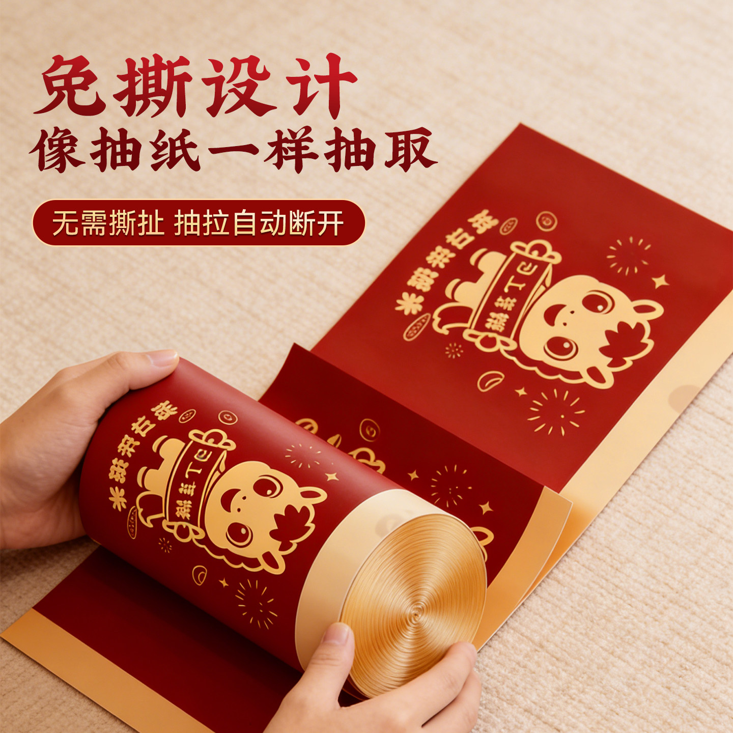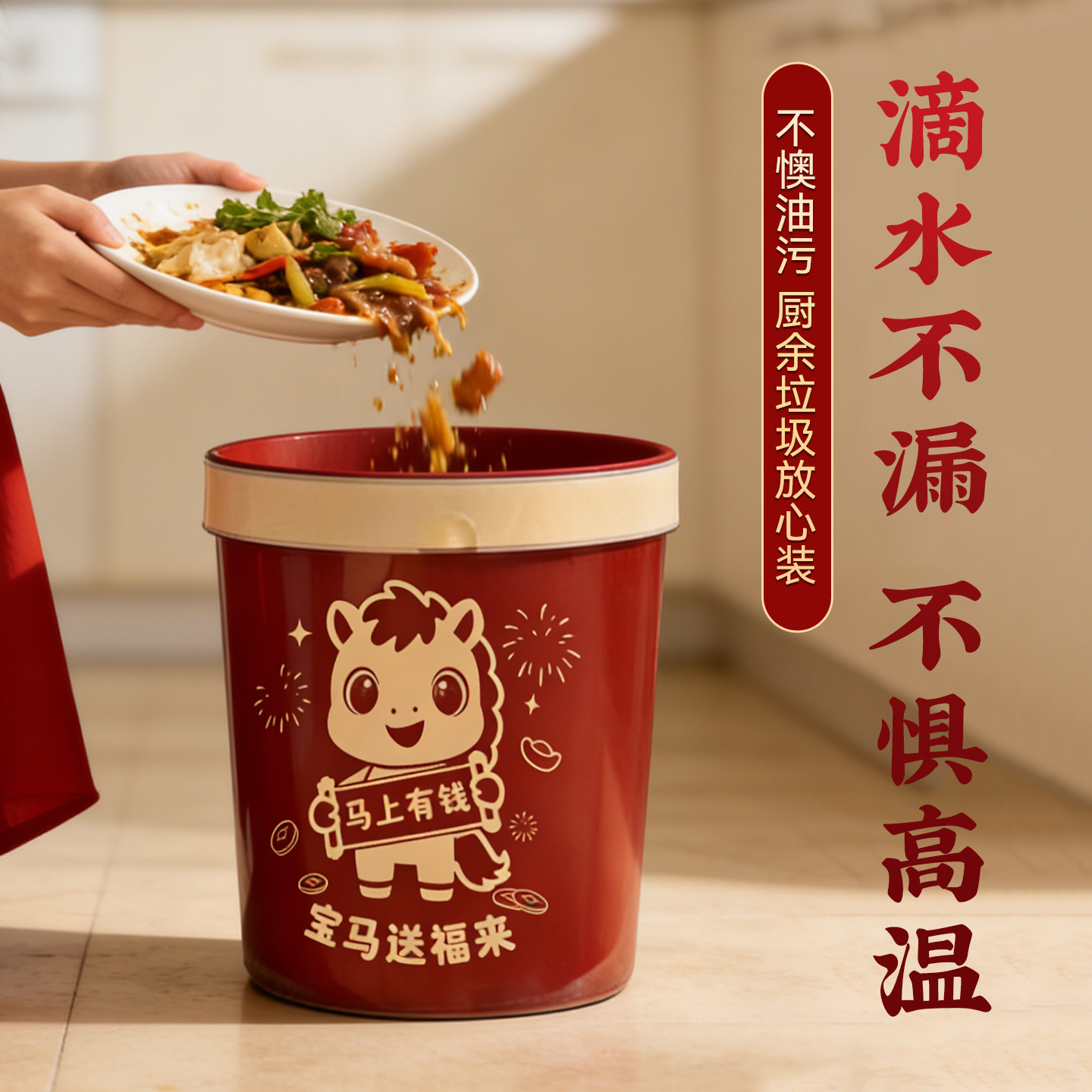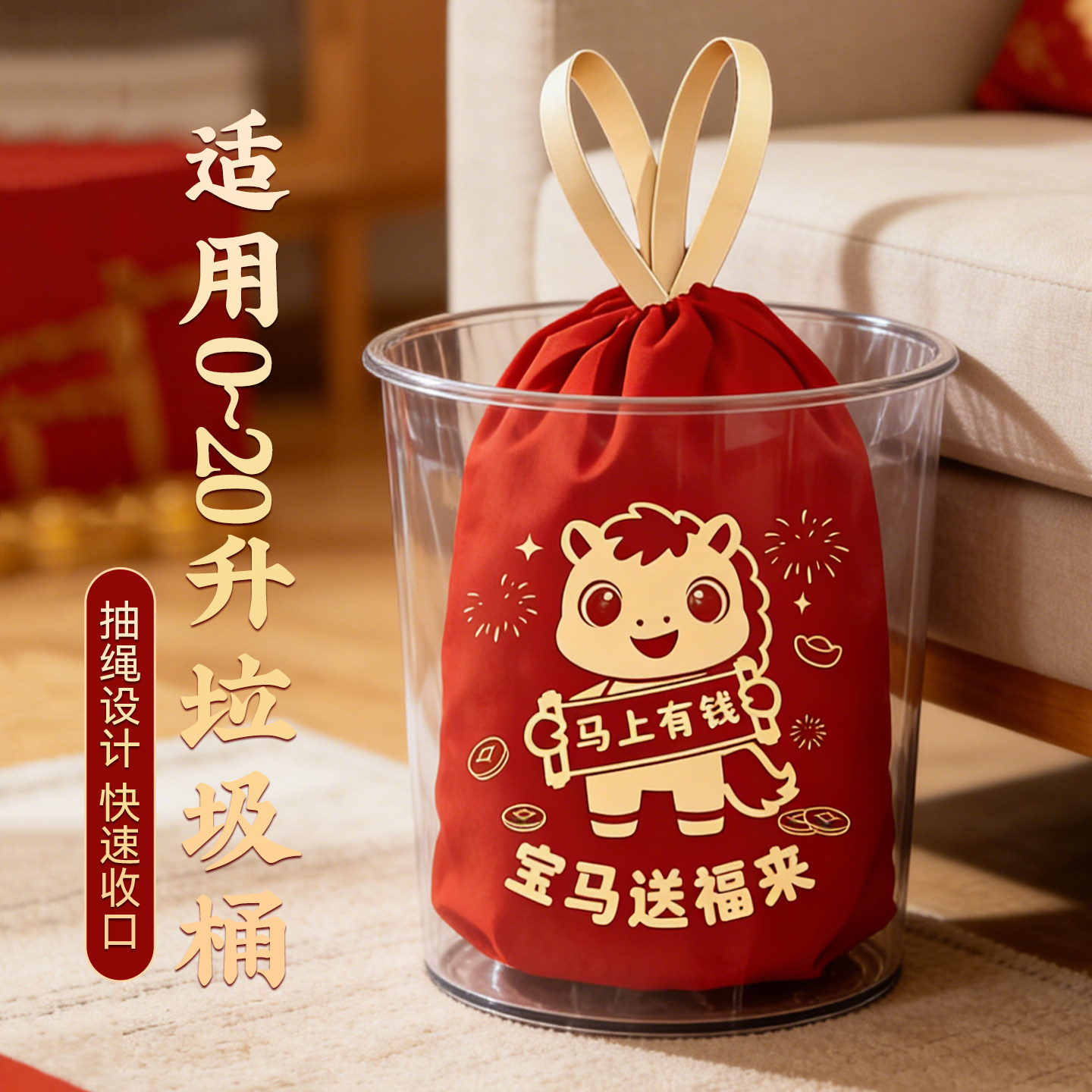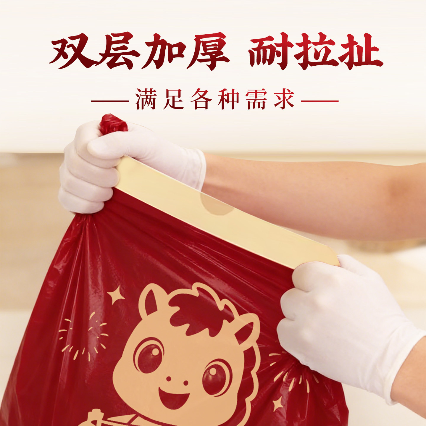 新年家用加厚手提式垃圾袋免撕大号抽绳超厚厨房用马年红色清洁袋