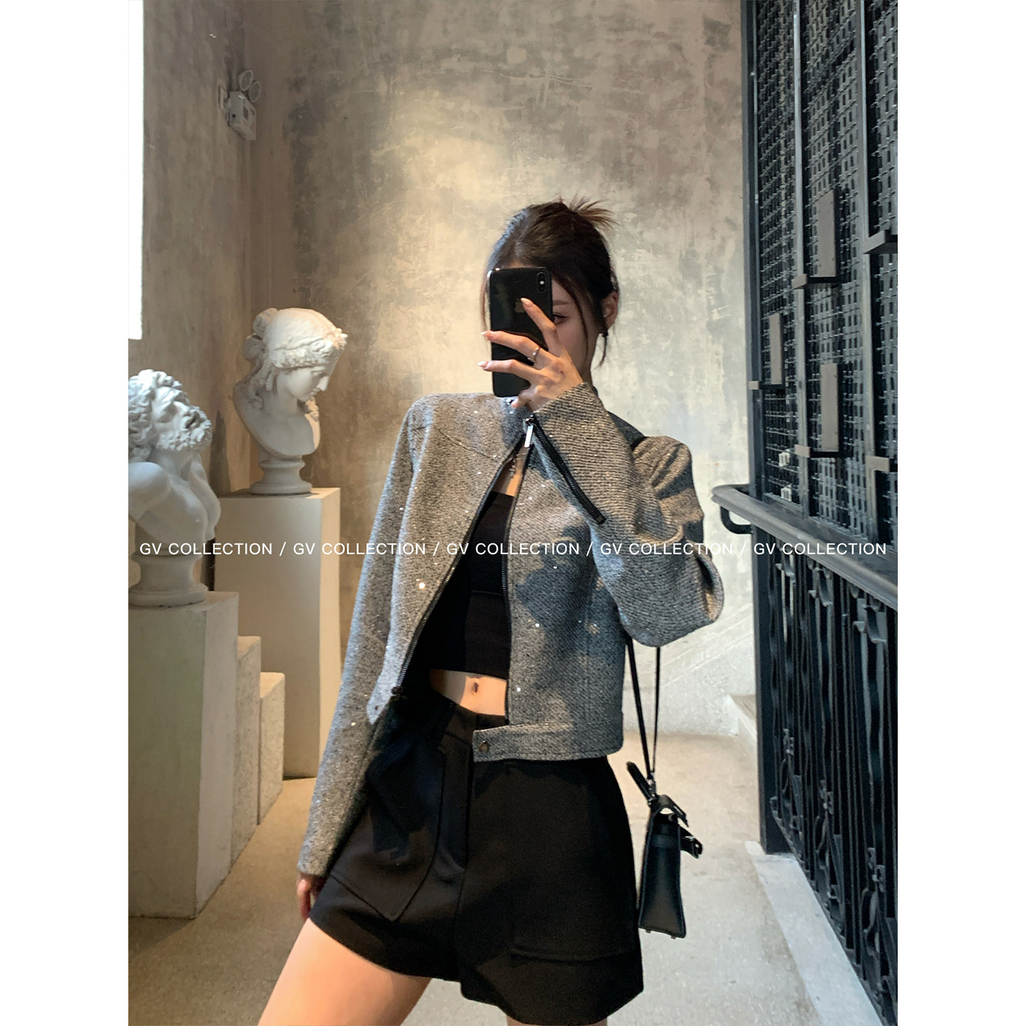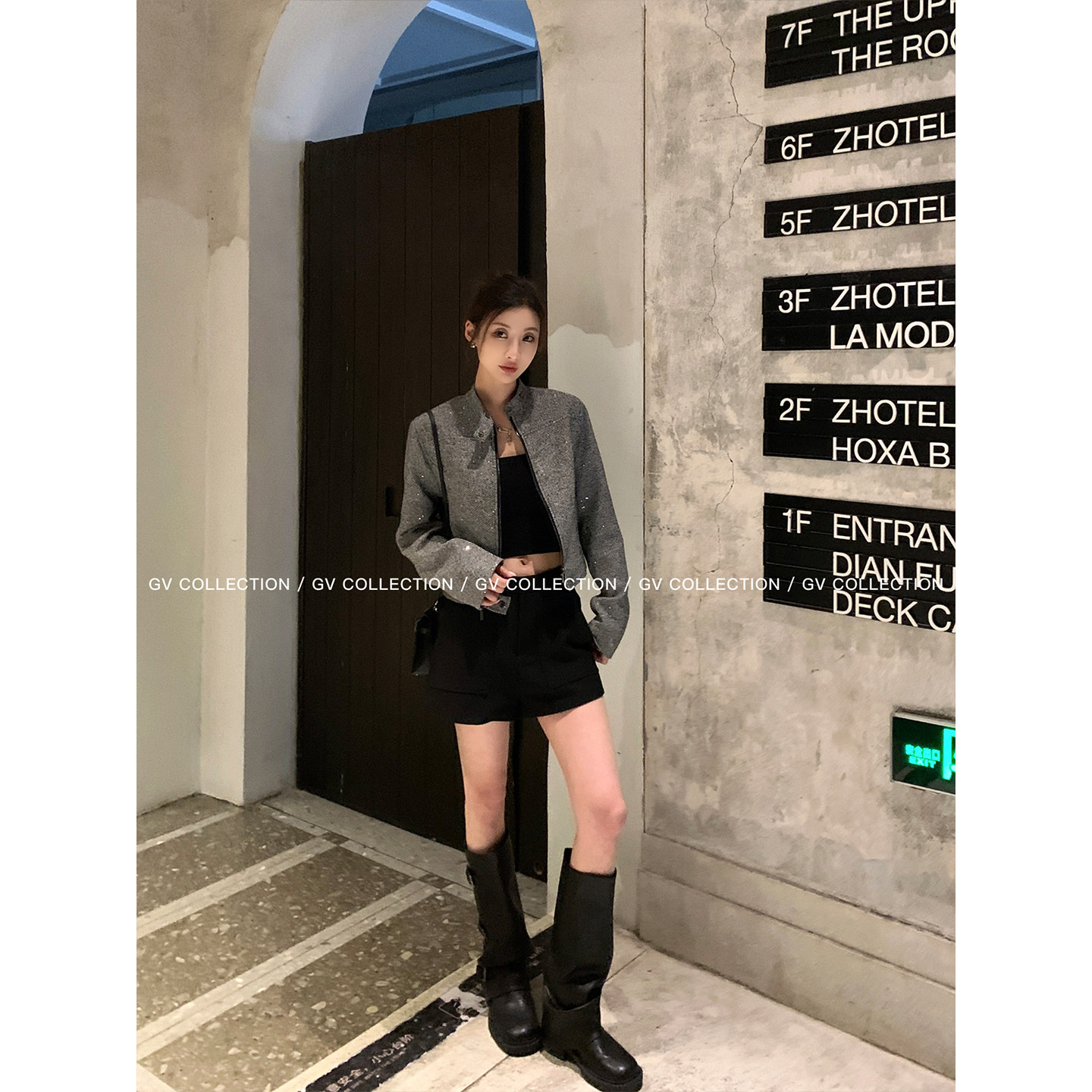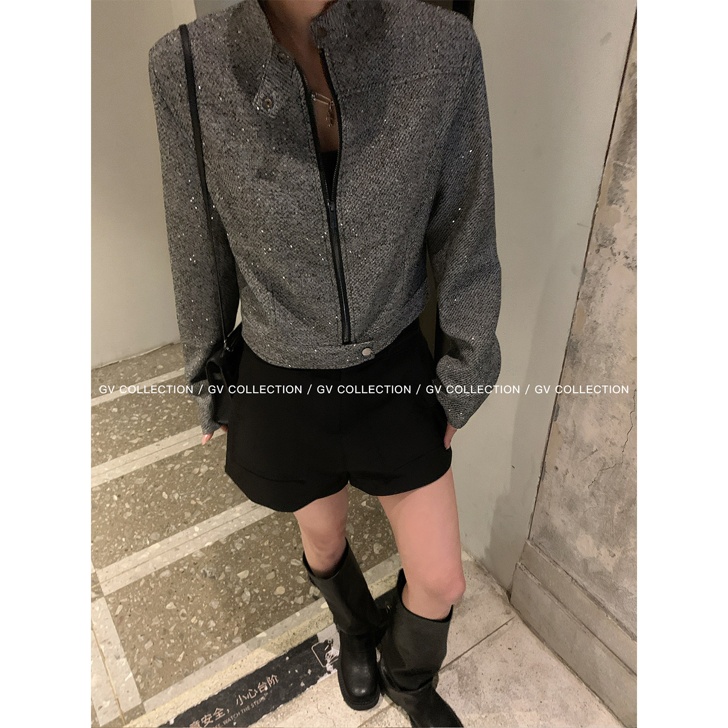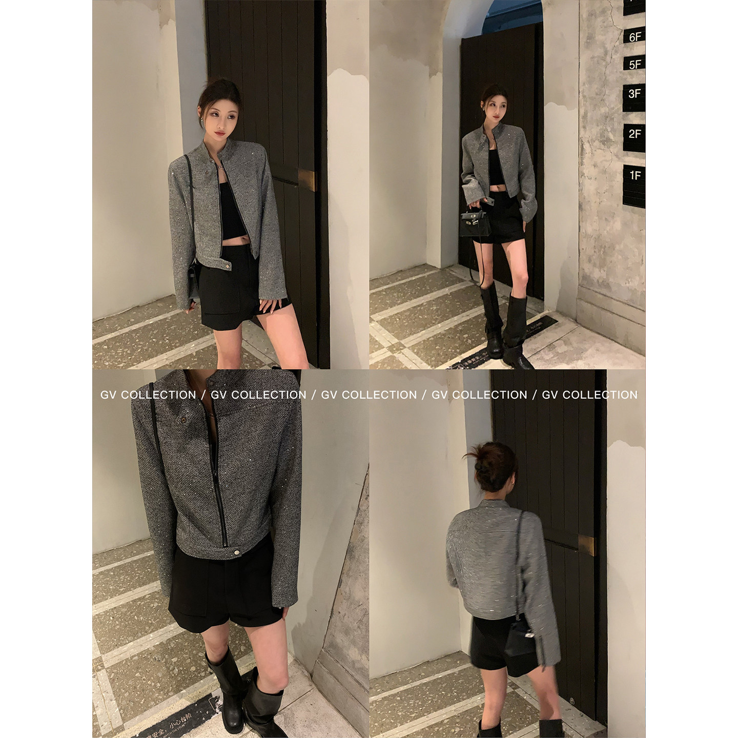 GV大白哥 鎏光银河 细节立领正肩细闪夹克上衣春季新款外套女气质
