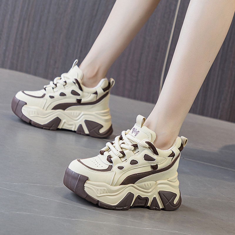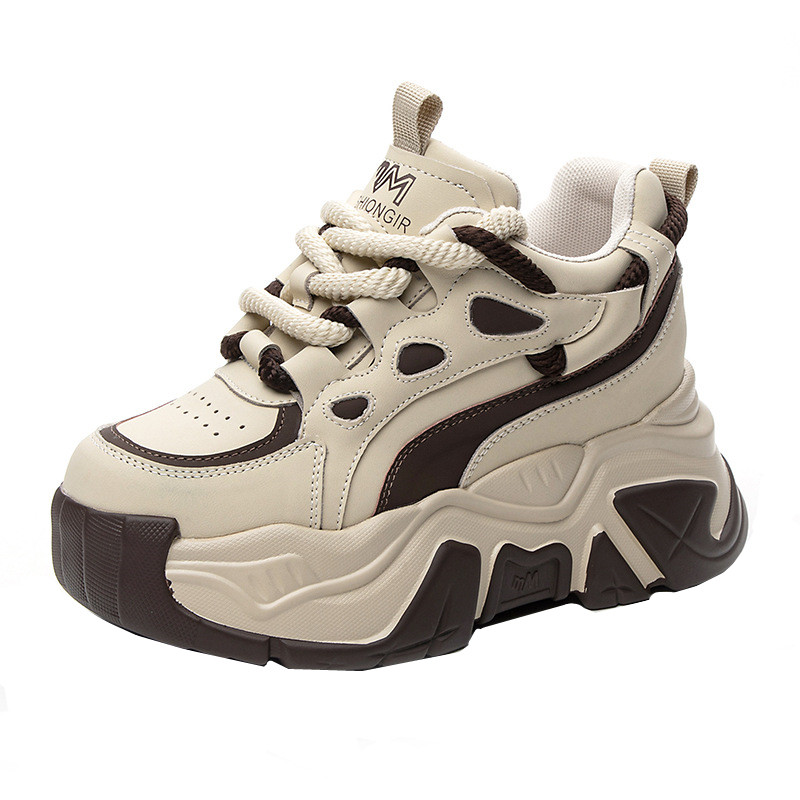 厚底内增高8CM真皮老爹鞋女2025秋冬新款百搭白色松糕休闲运动鞋
