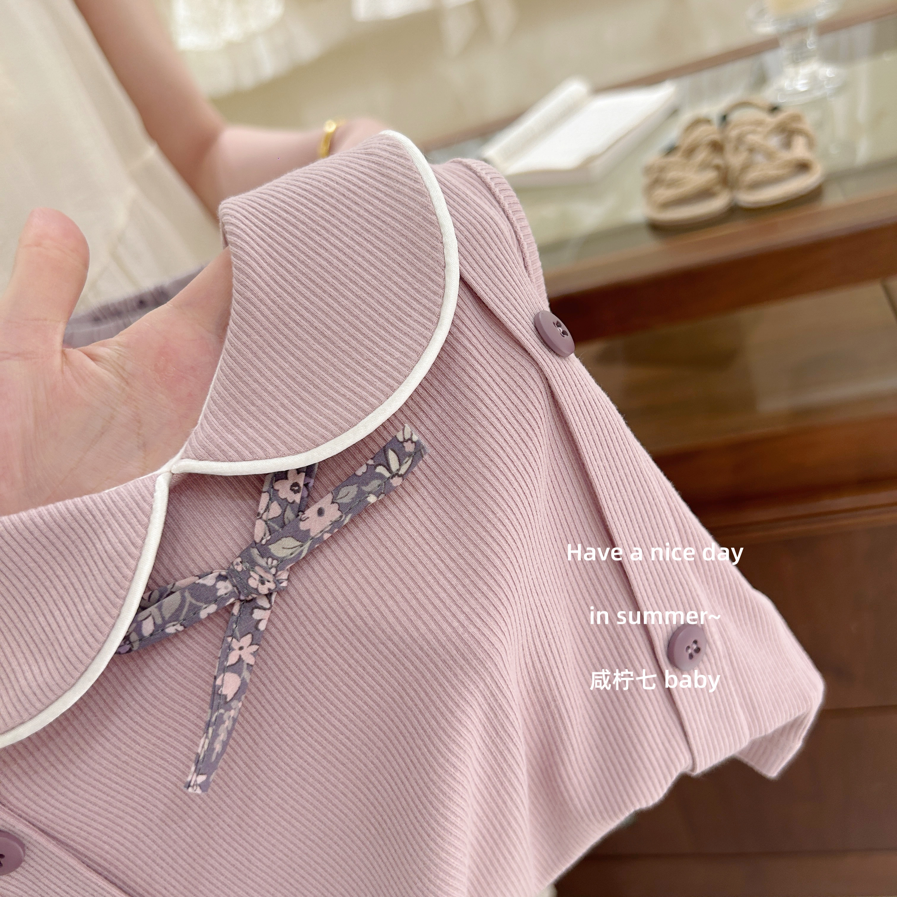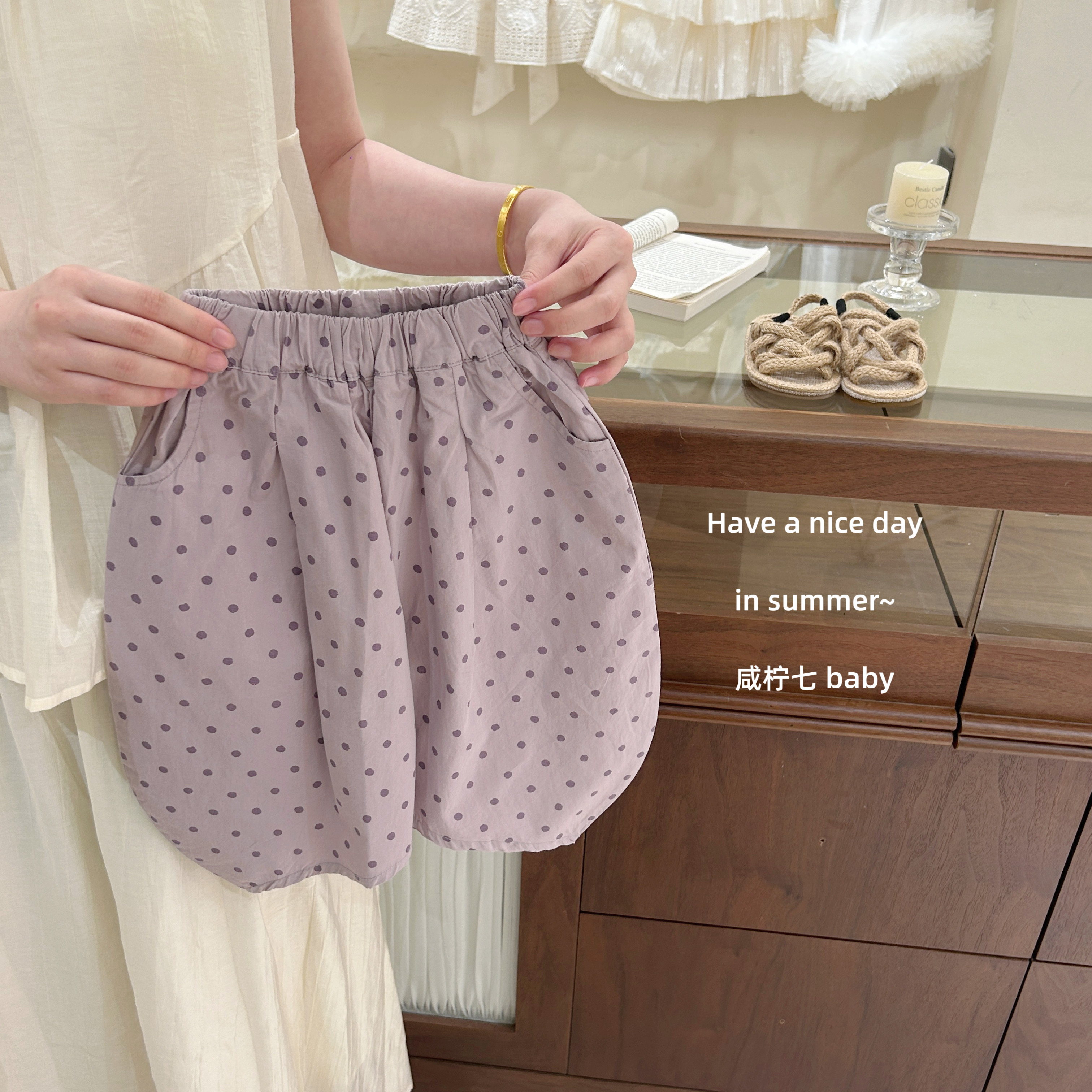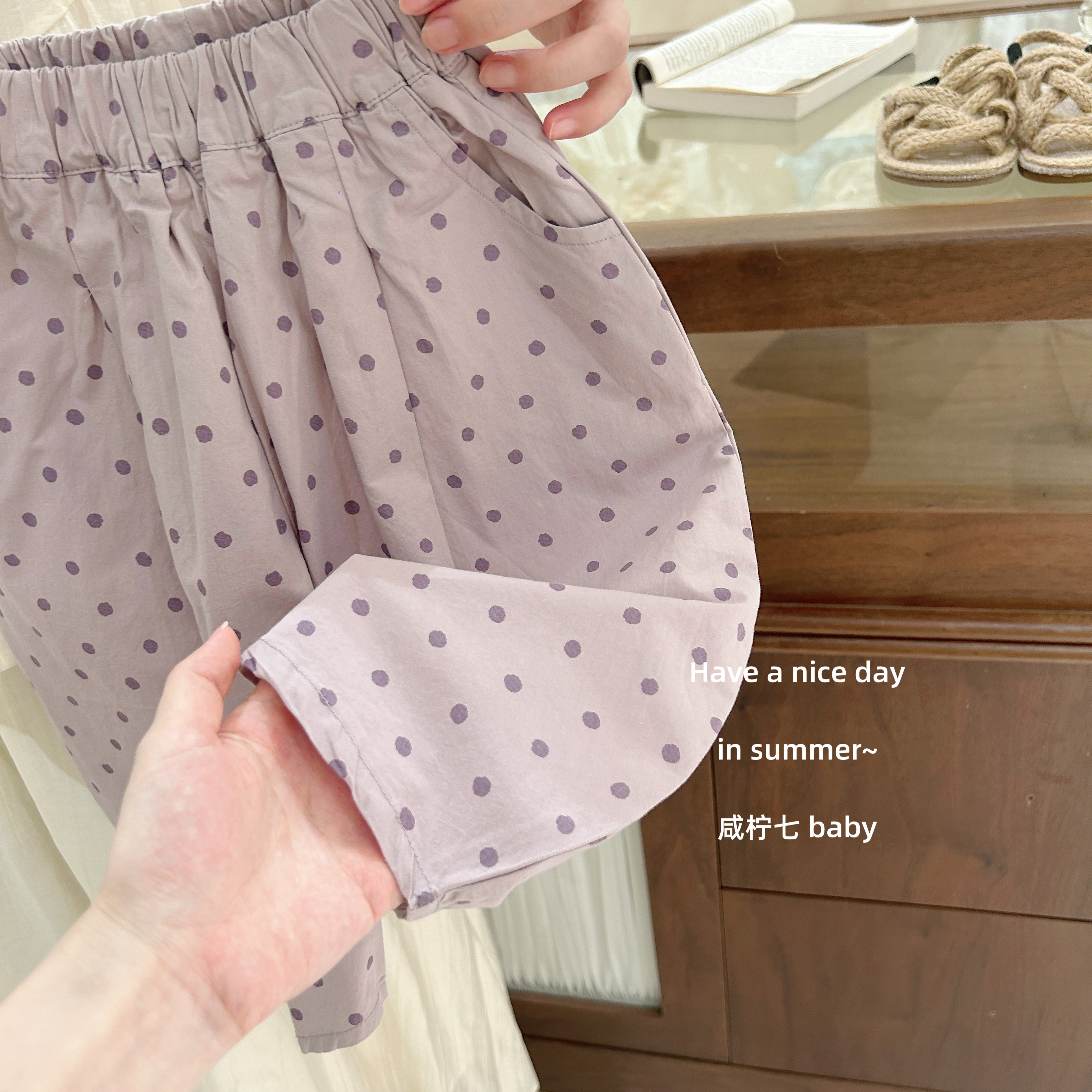【咸柠七】葡萄啵啵!韩版女童夏季套装娃娃领背心上衣波点弯刀裤